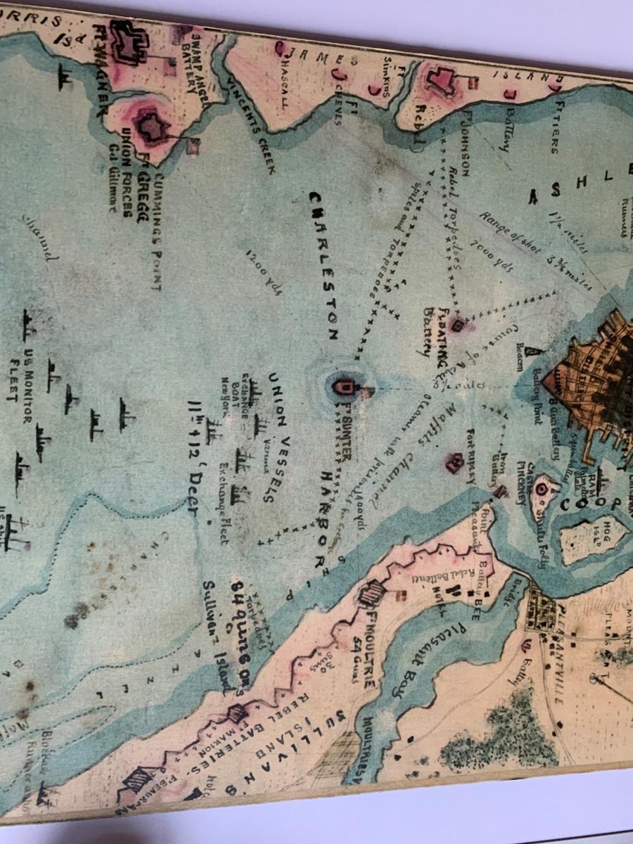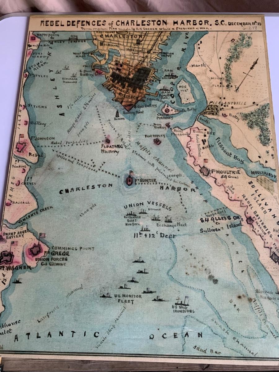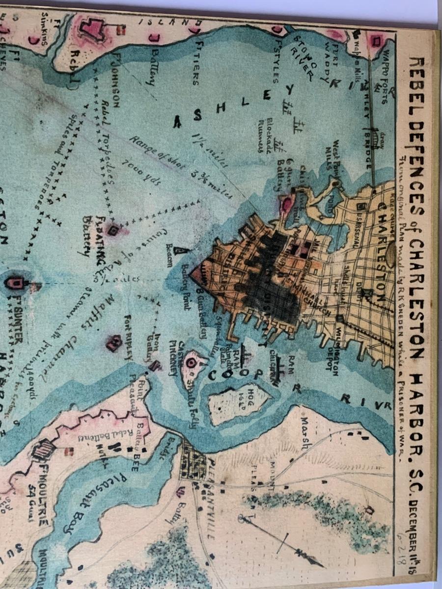 Rebel Defenses of Charleston Harbor, SC from original plan made by R K Sweden while a prisoner of war 18"W 24"H