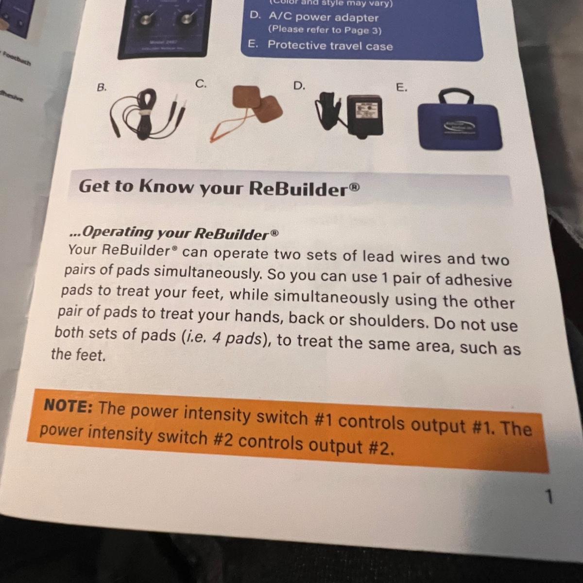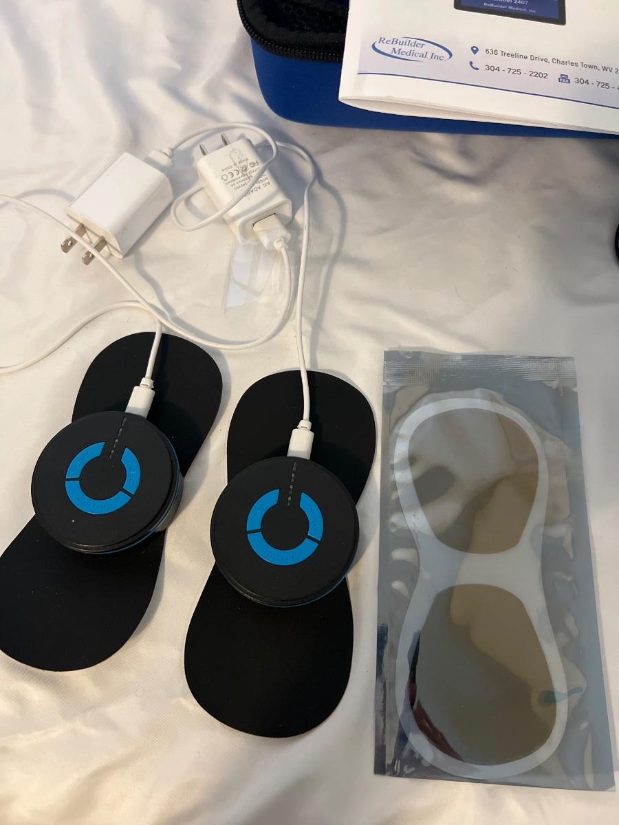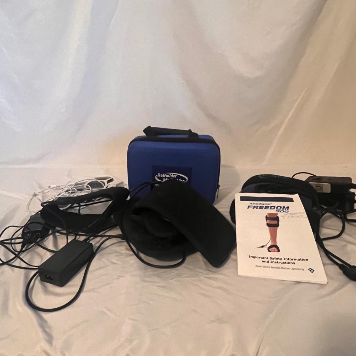 Three devices aimed at treating/relieving neuropathy and muscle pain. The Rebuilder 2407 comes with case, multiple pads, manual and more, see pics for full inventory. Lot also includes red light therapy belt and an Anodyne Freedom 300 neuropathy device. All units powered on.