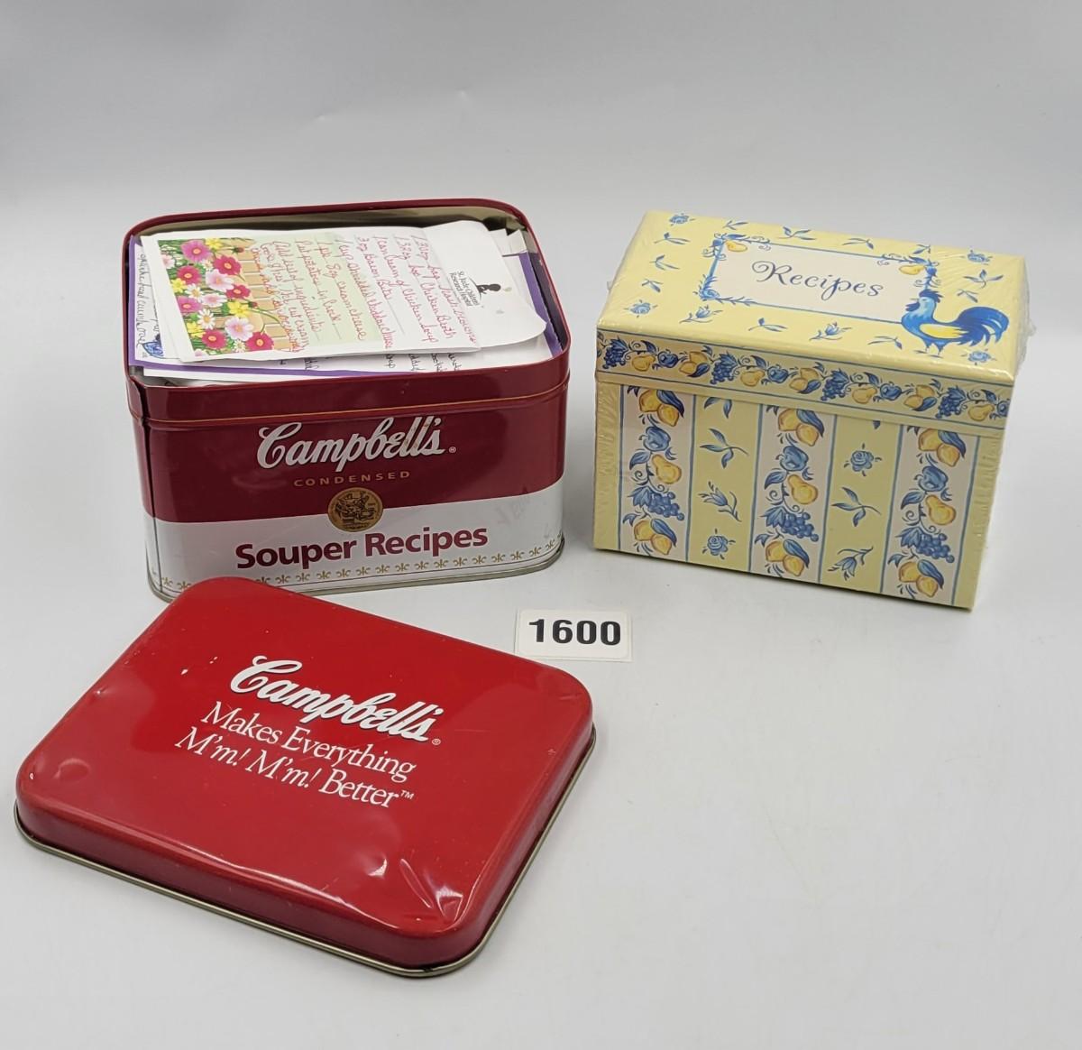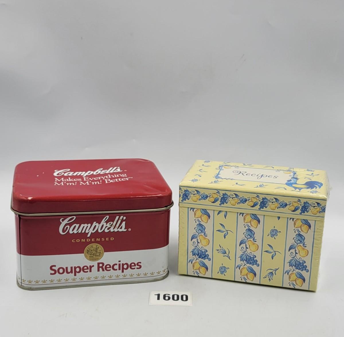 Campbell's Soup tin filled with recipes. The lemon recipe box is new in wrapping and could be used for just about anything that you could fit into it.