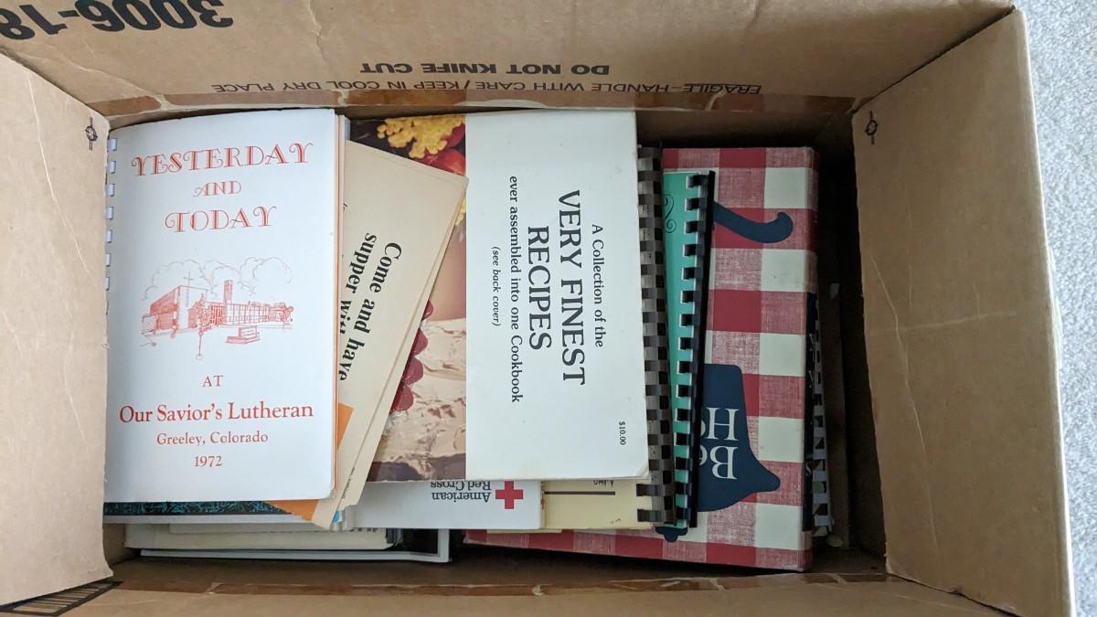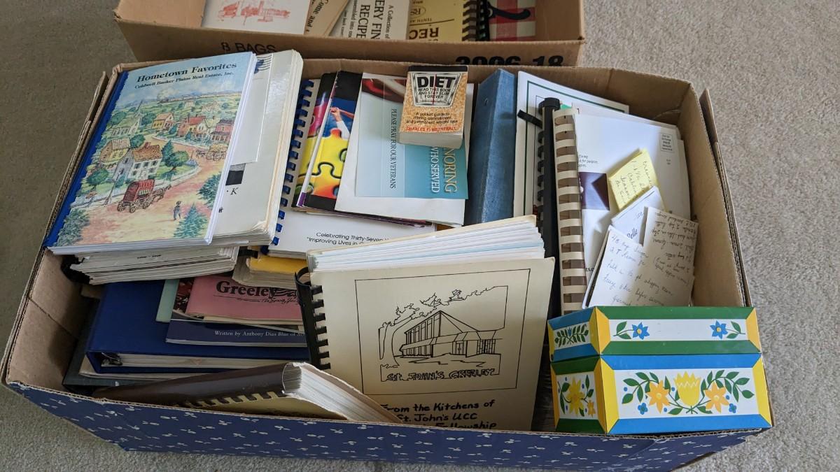 a lovely assortment of vintage cookbooks and hand written recipes. A TON of fun in this stacked lot. No shipping. Winning bidder responsible for removal of all items.