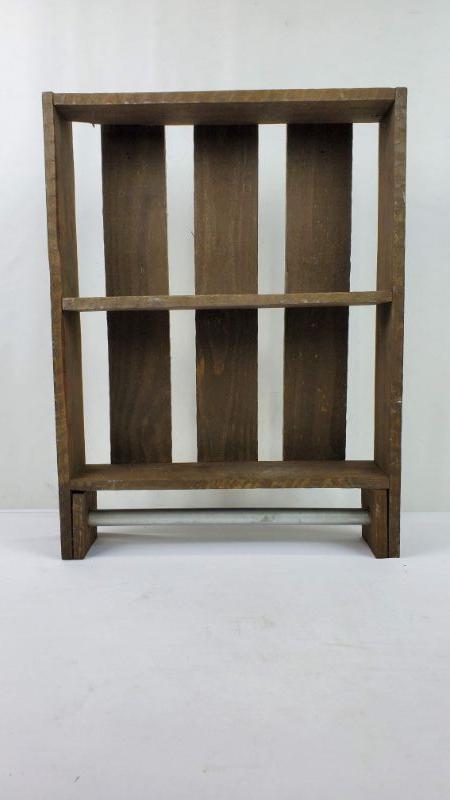Reclaimed Wood Bathroom Plank Shelf with Towel Bar, Dark Walnut - New