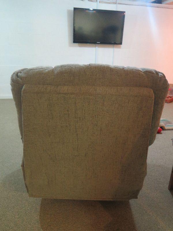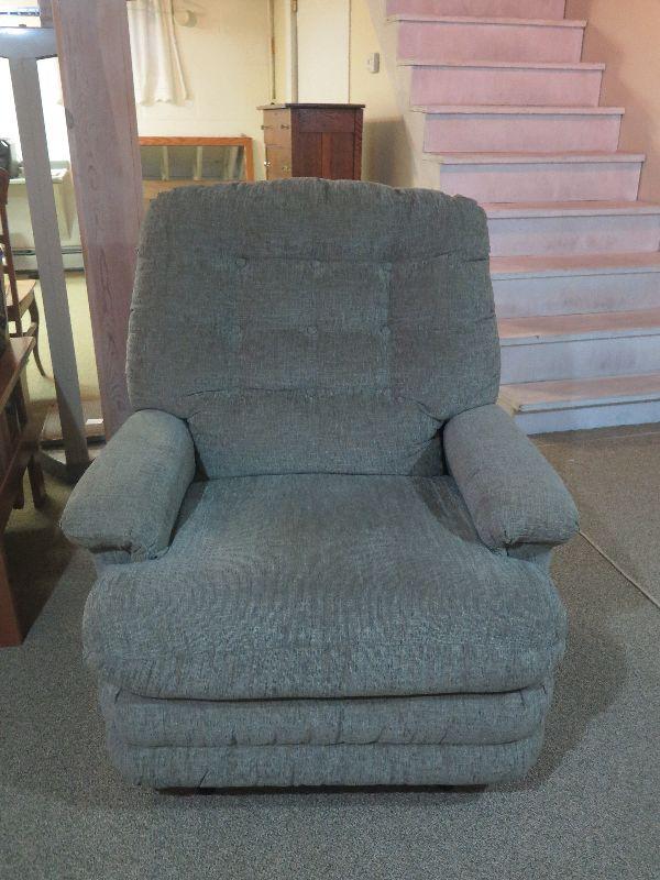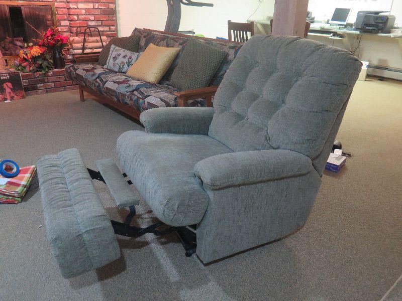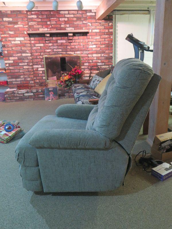 Blue, wall hugger, recliner. Very good condition. Heavy, bring help to move from basement.