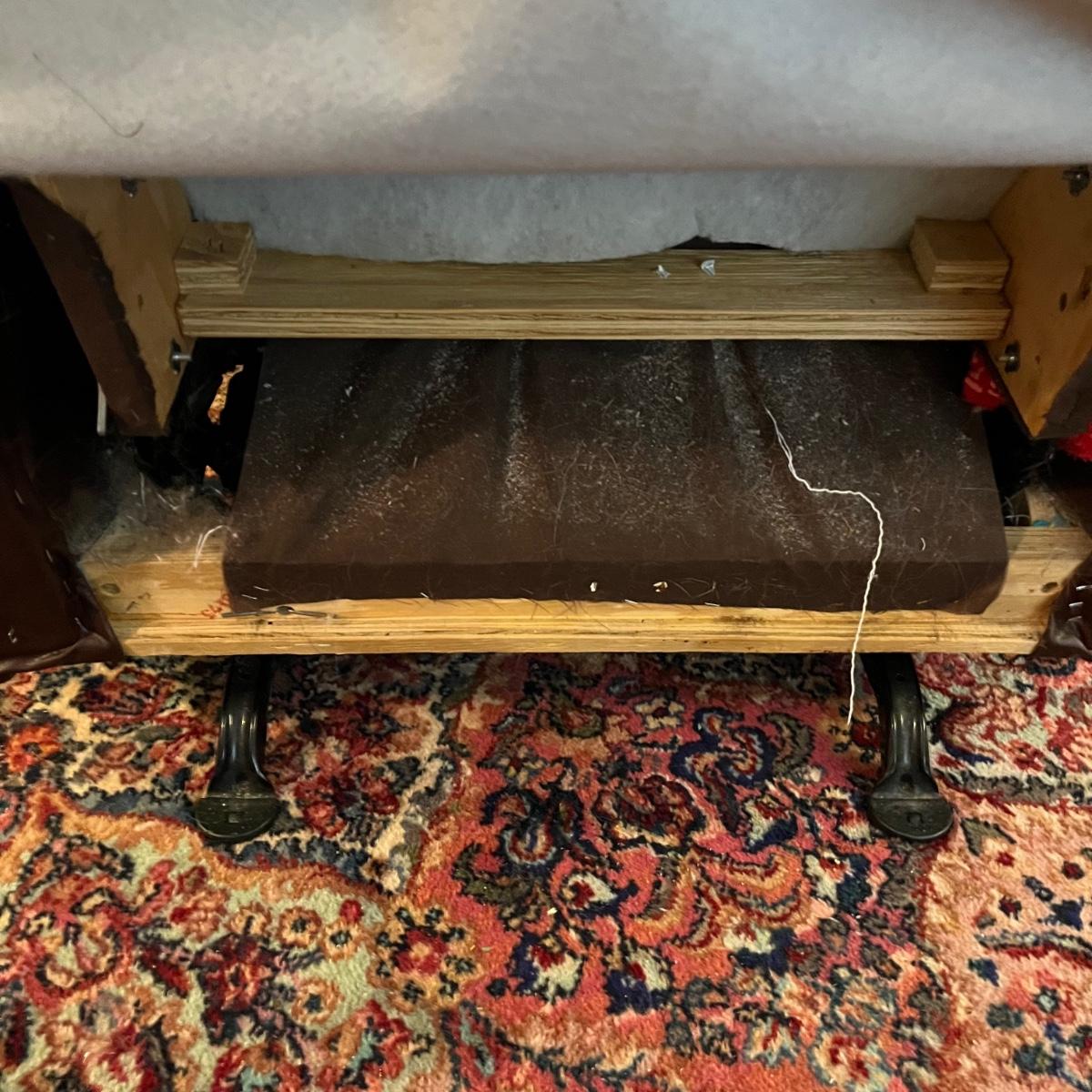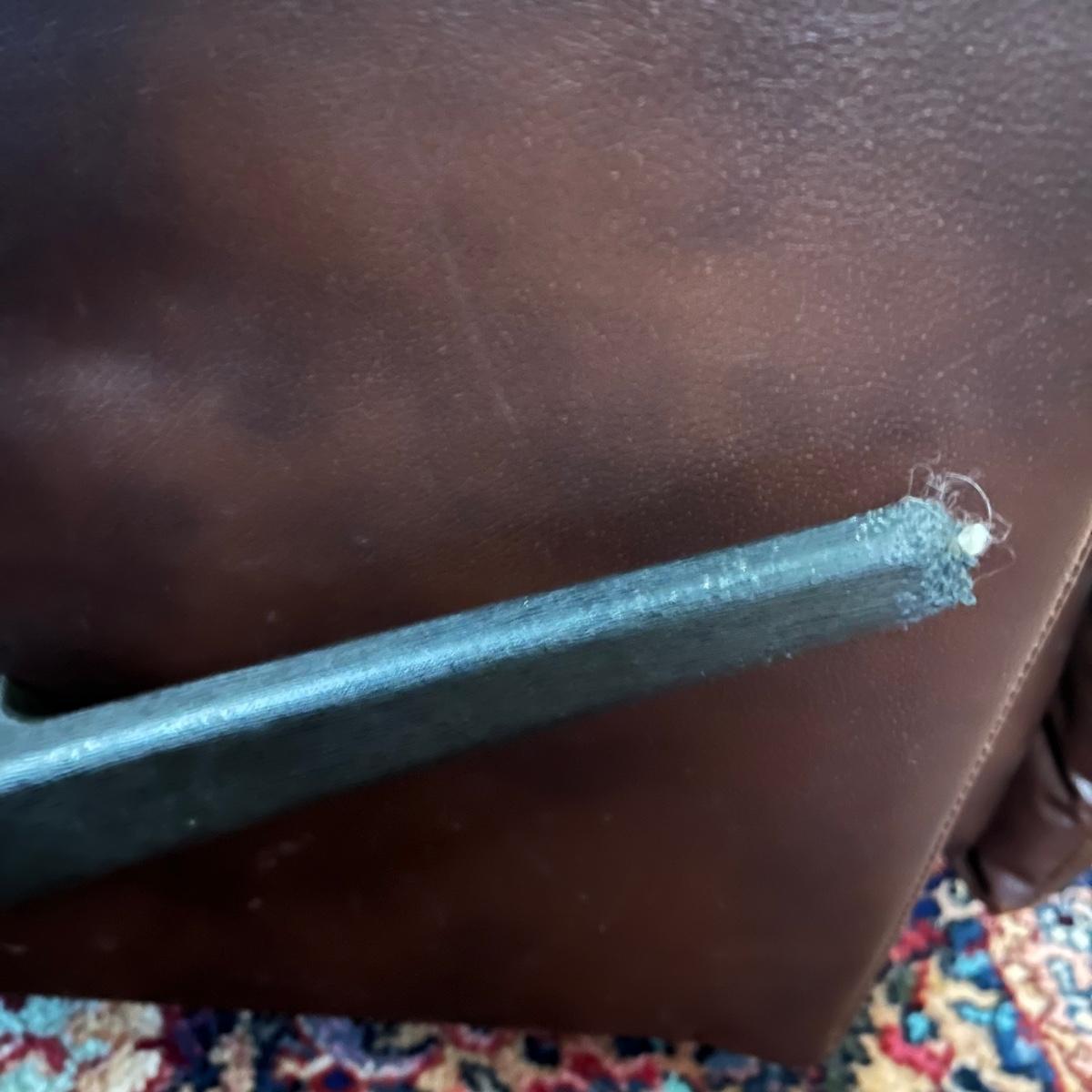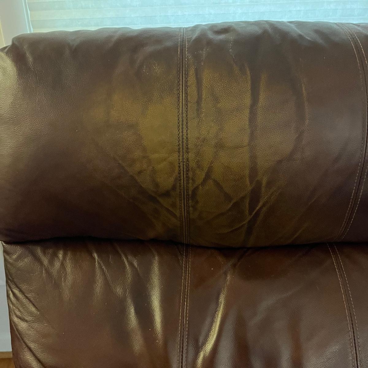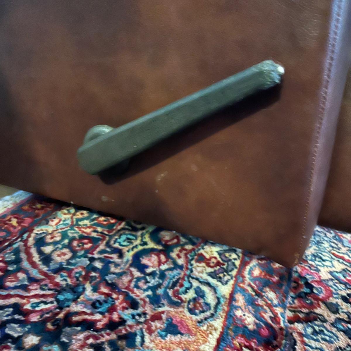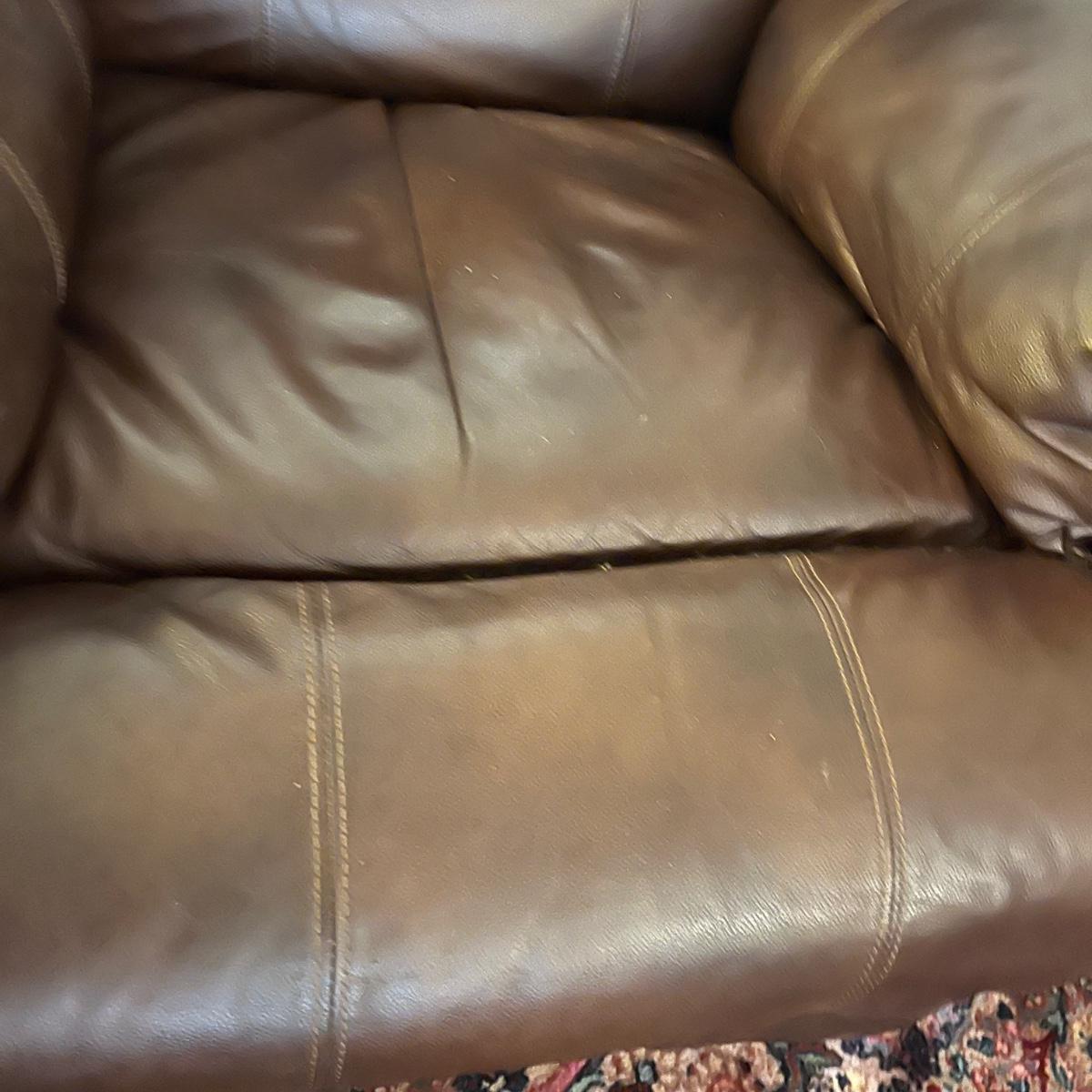 Lot includes a recliner by Lane industries that is leather and vinyl. Recliner measures 37” x 39” x 39” with a seat height of 18”. Recliner measures 66” long when open. Bring help item is substantial. Recliner has wear by the top where your head rest and handle has chew marks, see pictures.