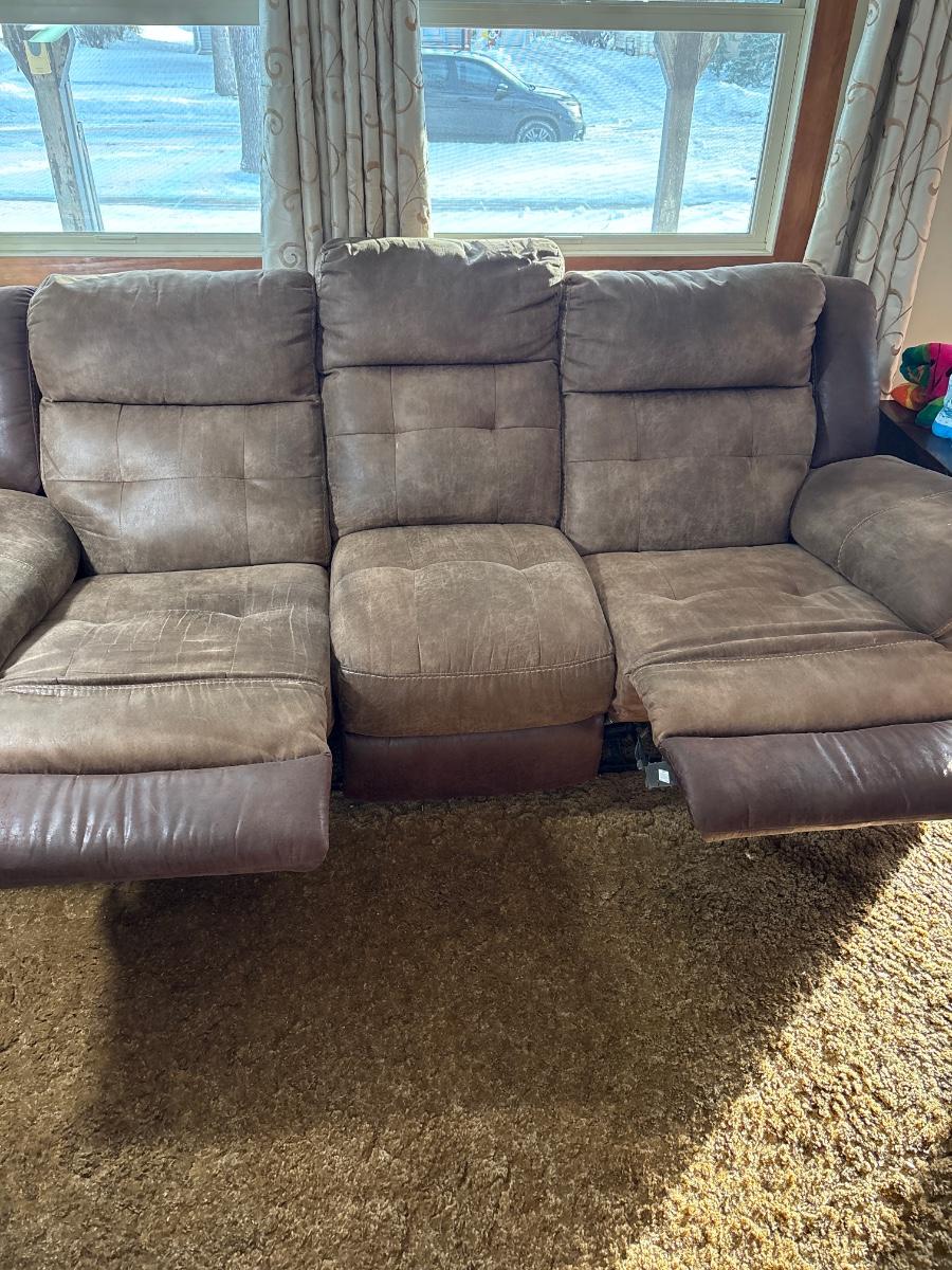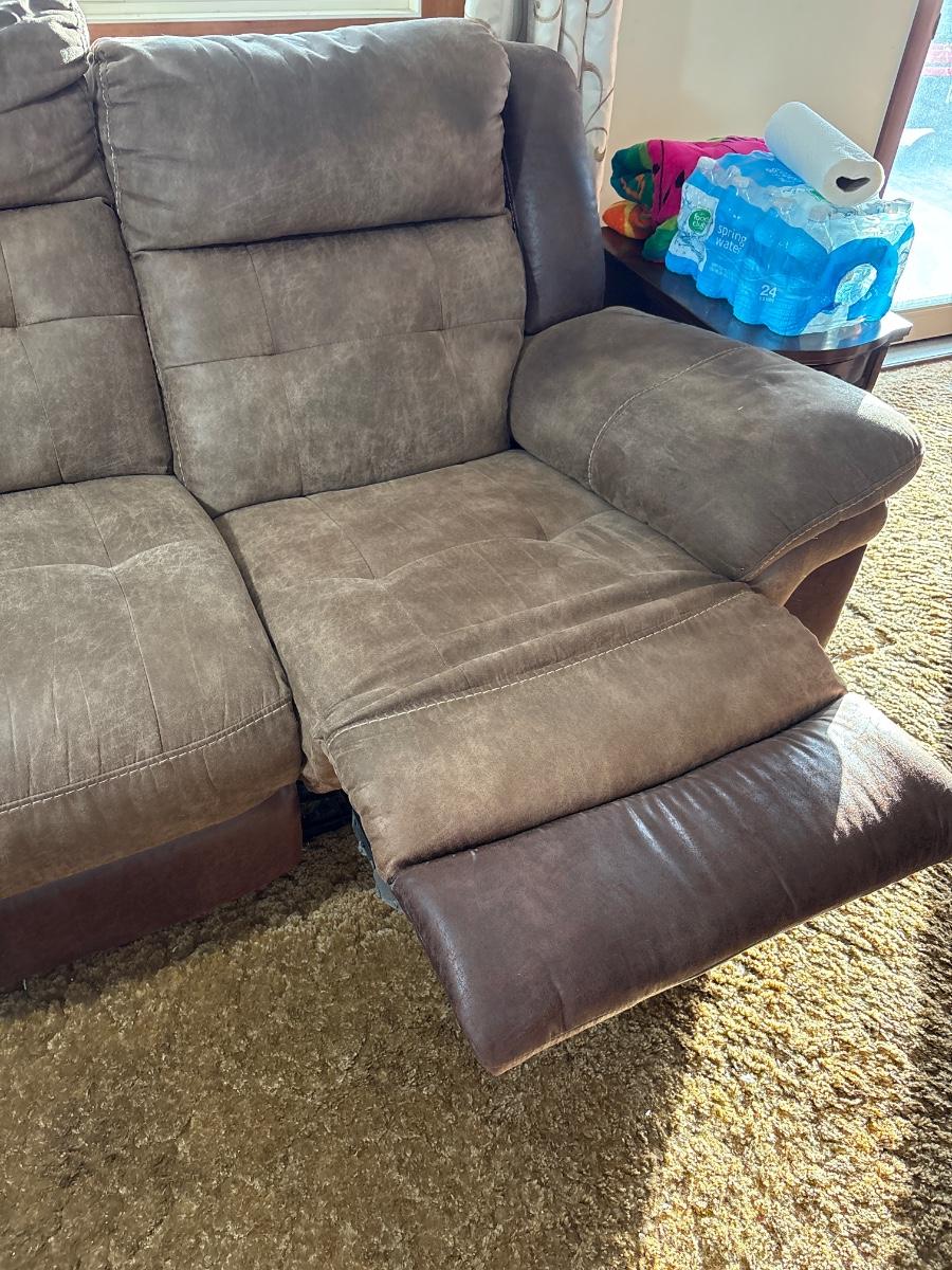 In nice shape, shows somewhere on arms. Both ends recline very comfortable.