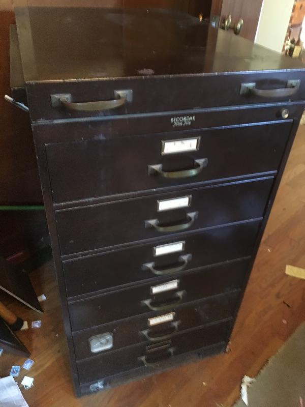 RECORDAK Vintage Industrial Metal File with Stamp Collection Contents! 20 x 28 x 37”h