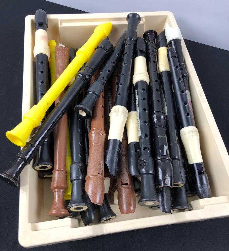 Here are some 20-plus recorders or flutes/woodwinds...Normal use on these school musical instruments...