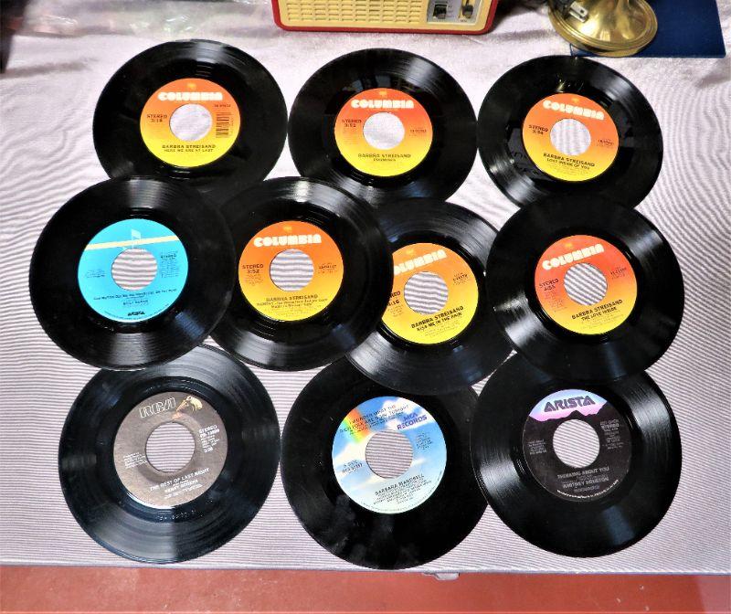 RECORDS 45's LOT Kenny Rogers, Whitney Houston, Barbra Streisand, Billy Ocean misc (yr 1979 +). Not tested.