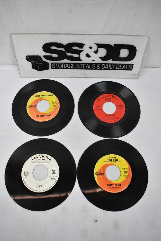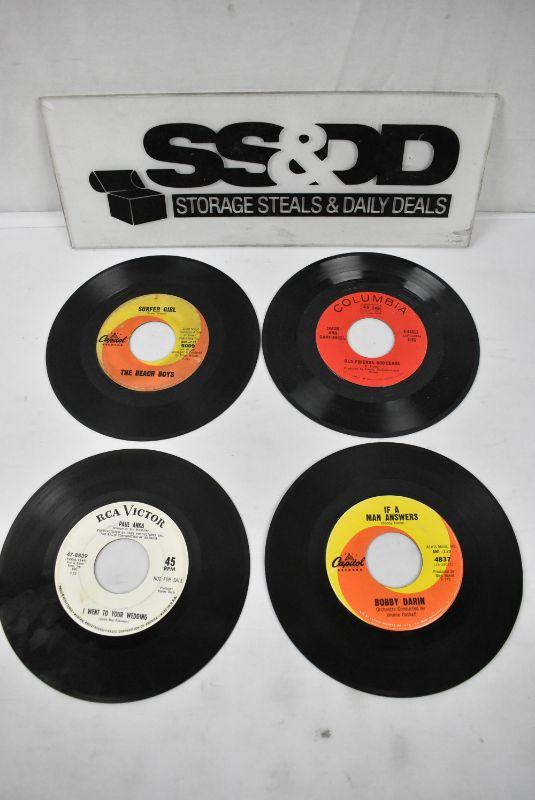 Records, 45s, Qty 4: Beach Boys, SImon & Garfunkel, Paul Anka, & Bobby Darin - Vintage