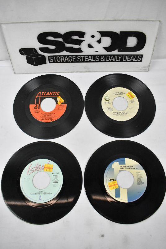 Records, 45s, Qty 4: Phil Collins, Elton John, Frankie Goes to Hollywood, Richard Marx - Vintage