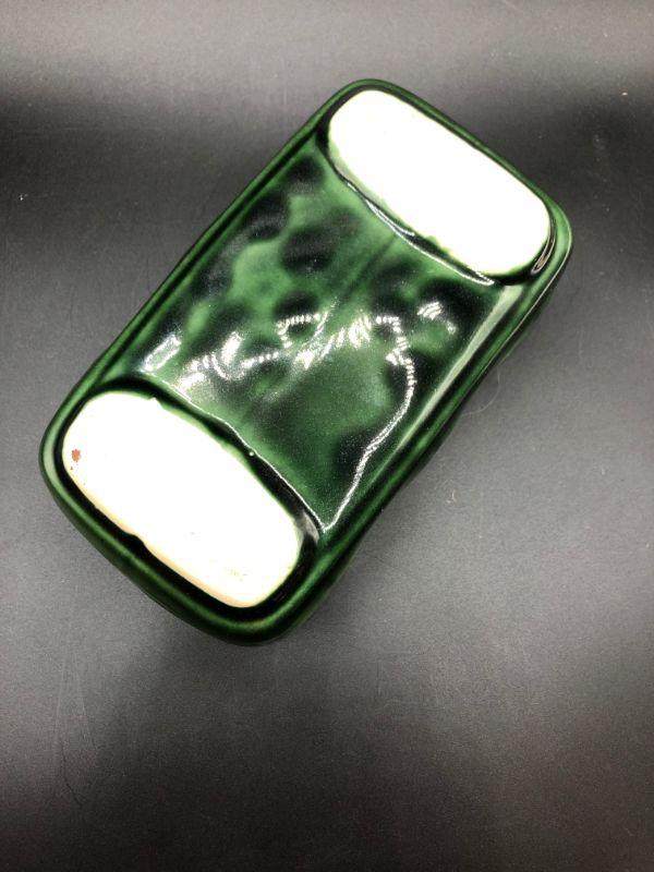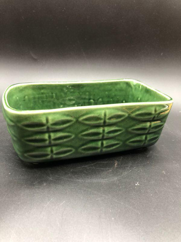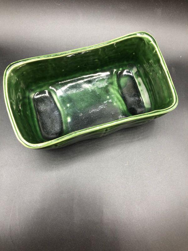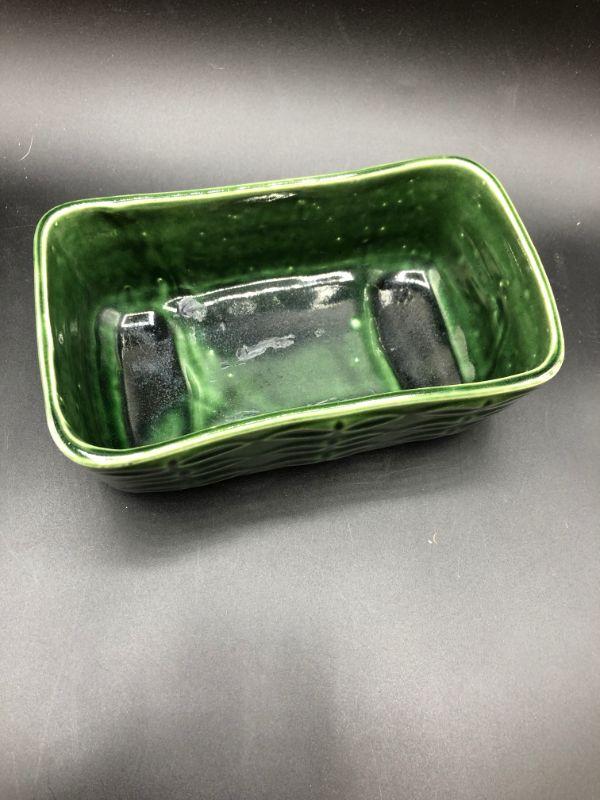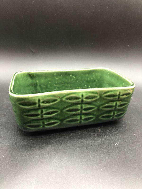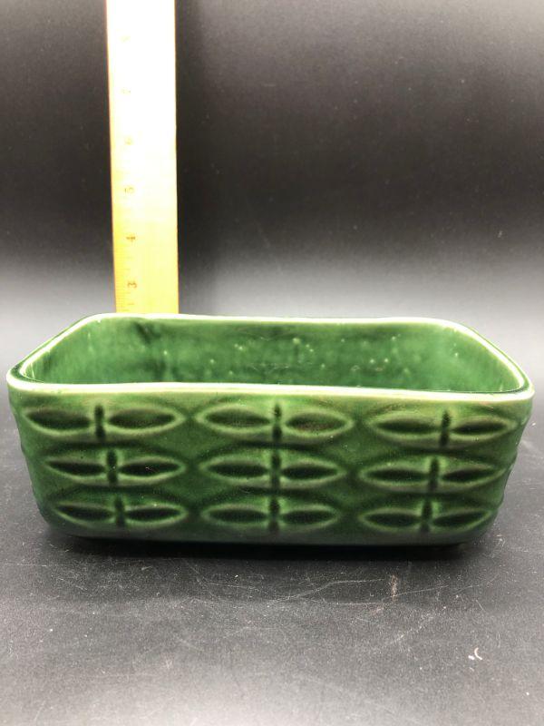 McCoy? unmarked vintage ceramic pottery, rectangle, dark green jade