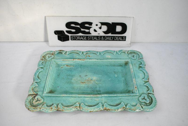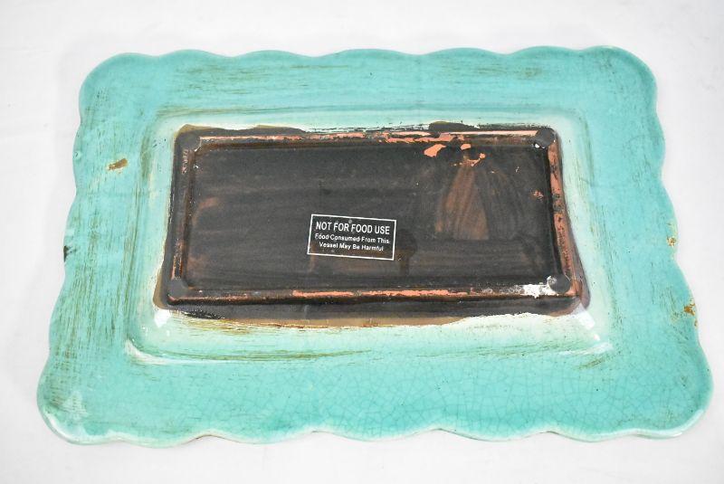 Rectangle Ceramic Tray, Turquoise "Shabby Chic"