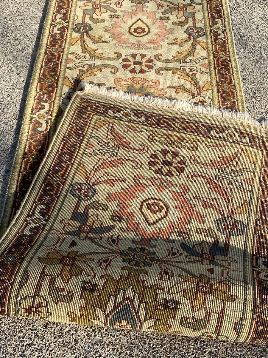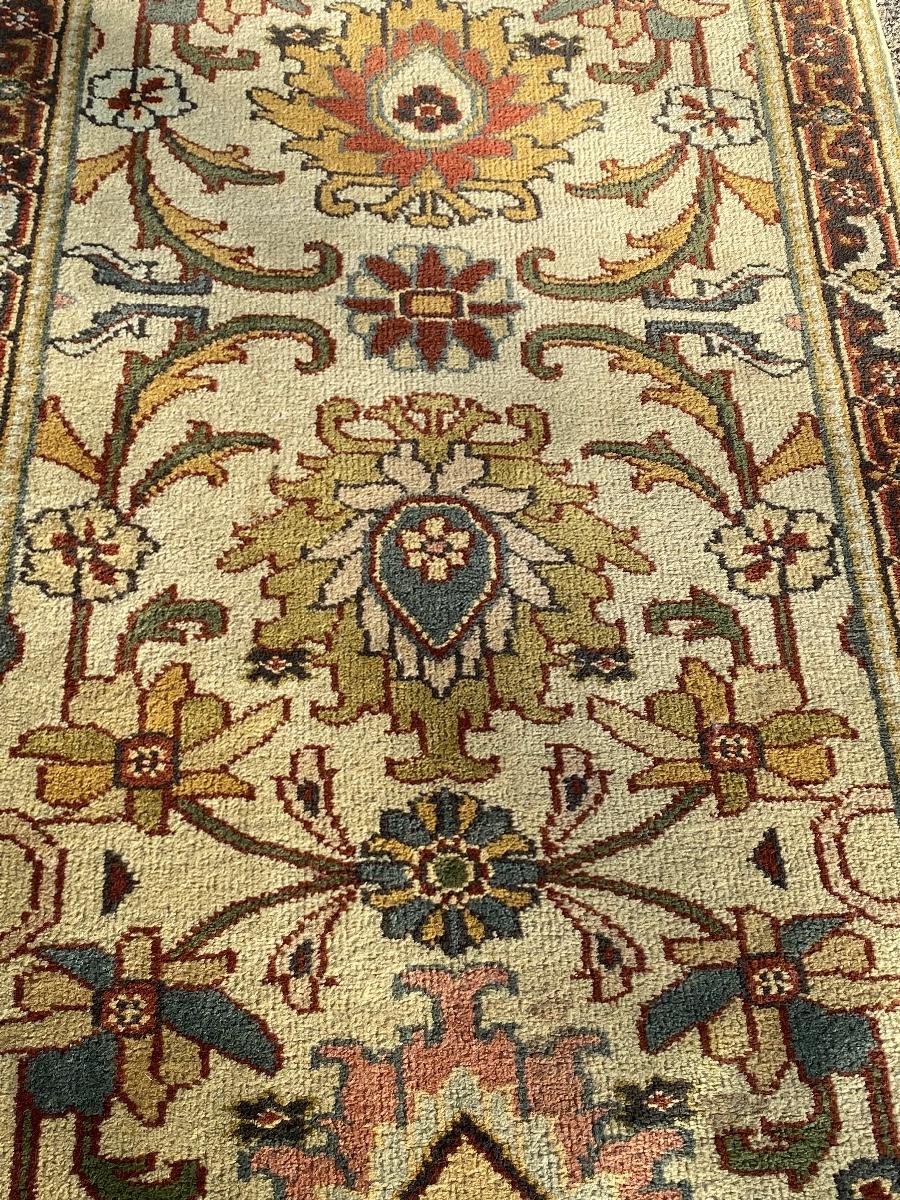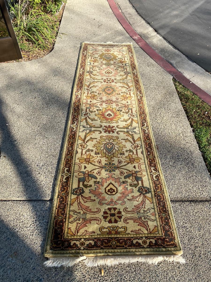 Rectangular Nylon Hallway Runner Flower Design Rug, there are no tears or rips to the rug and is in good useable condition. Check pictures for more details and for sizing. About 8' length.