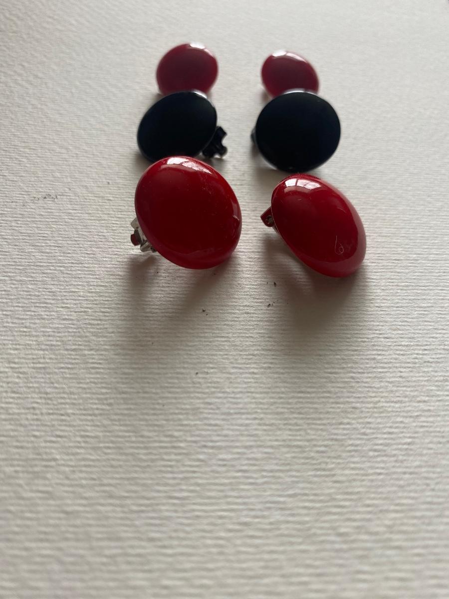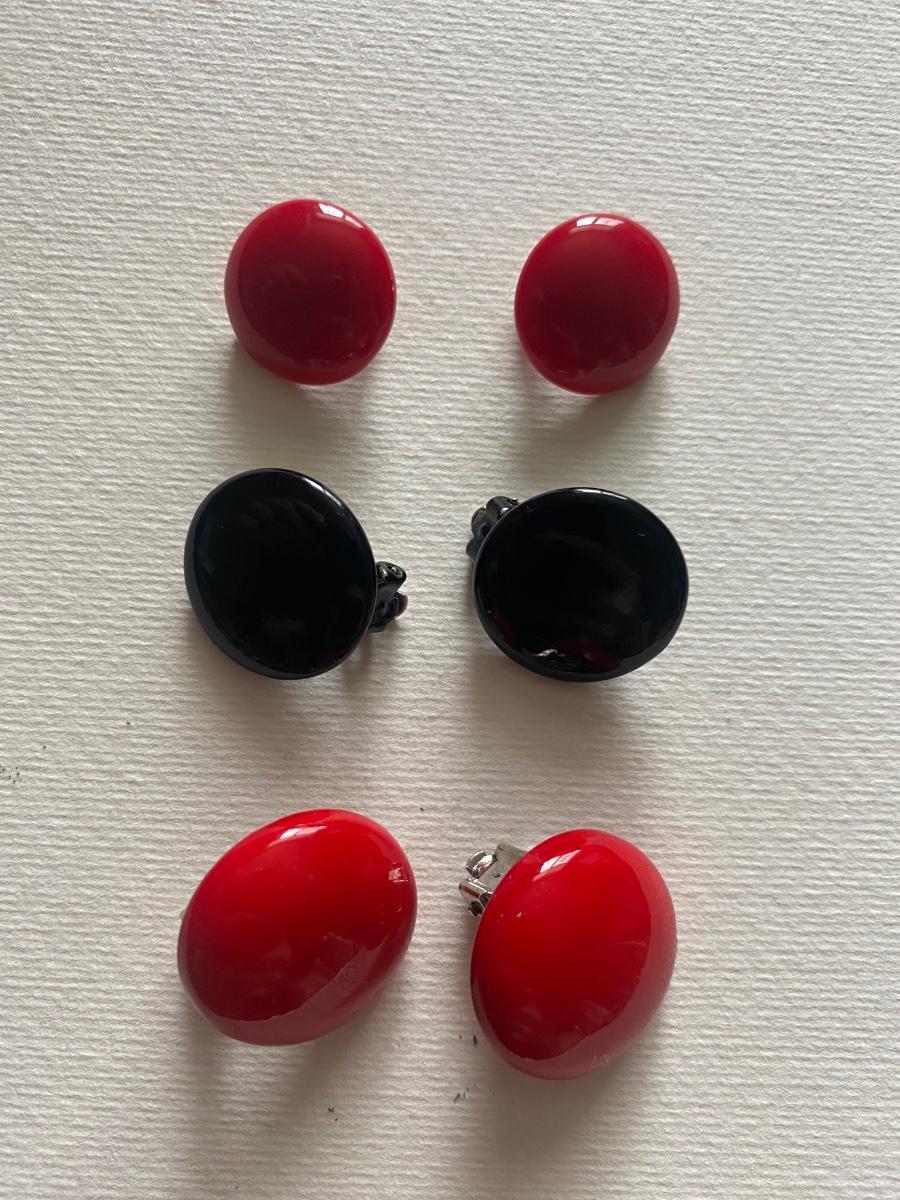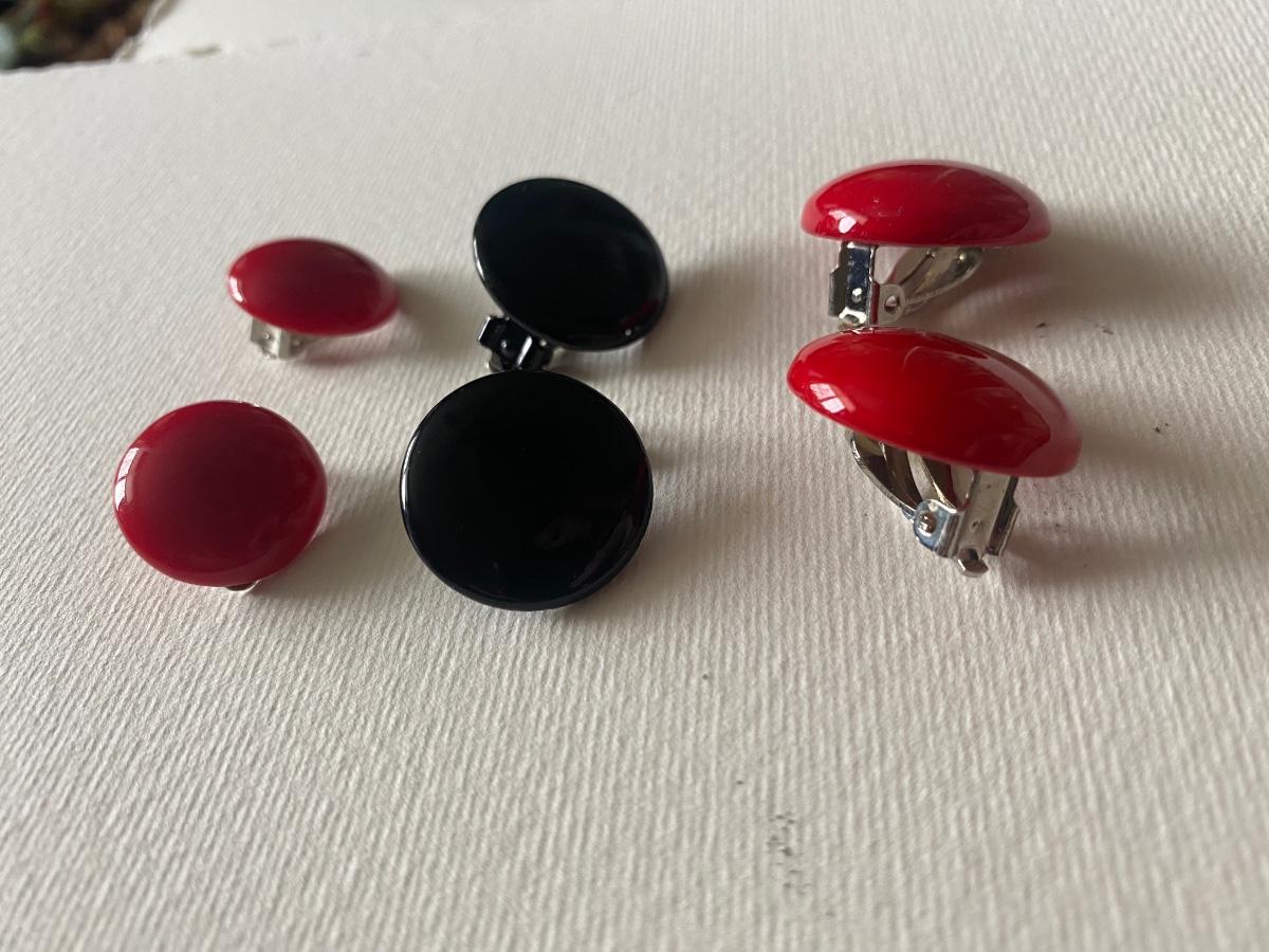 Red and black button clip earring lot : Ladybugs and Betty boop made it cool