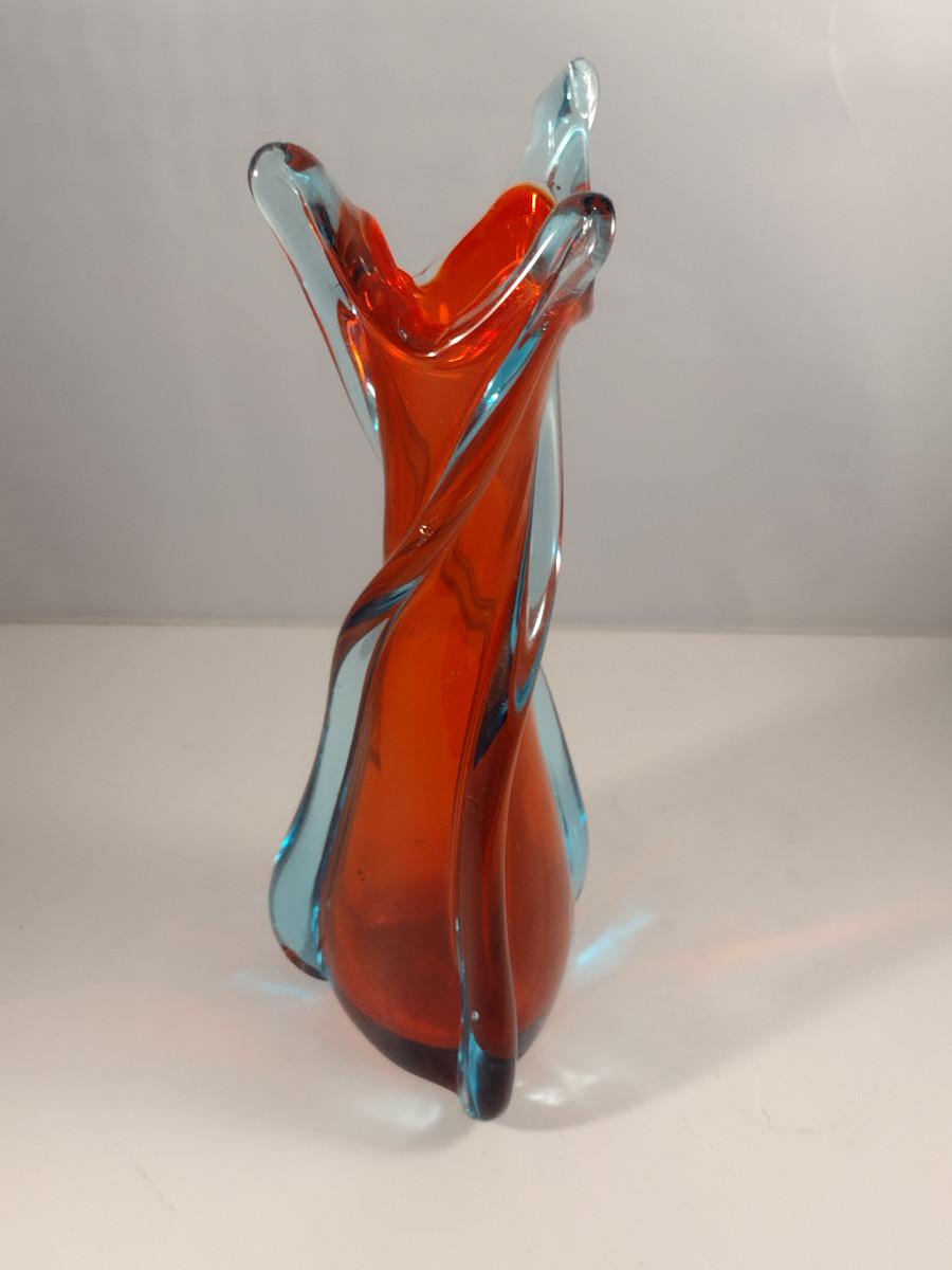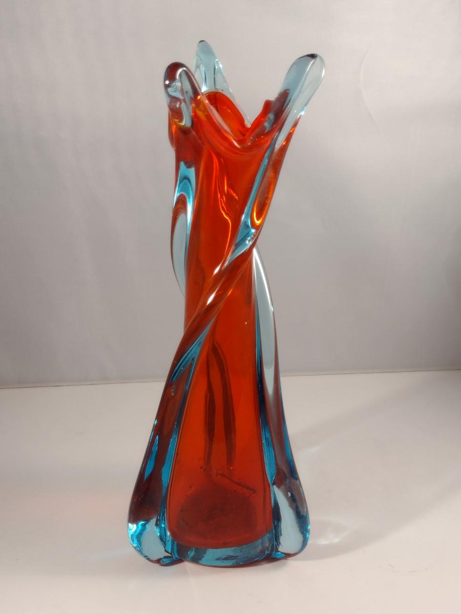 Red and Blue Twisted Art Glass Vase- Possibly Murano