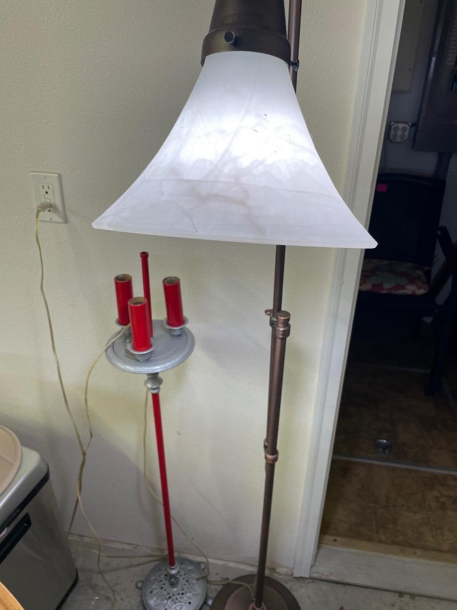 Red and bronze floor lamps