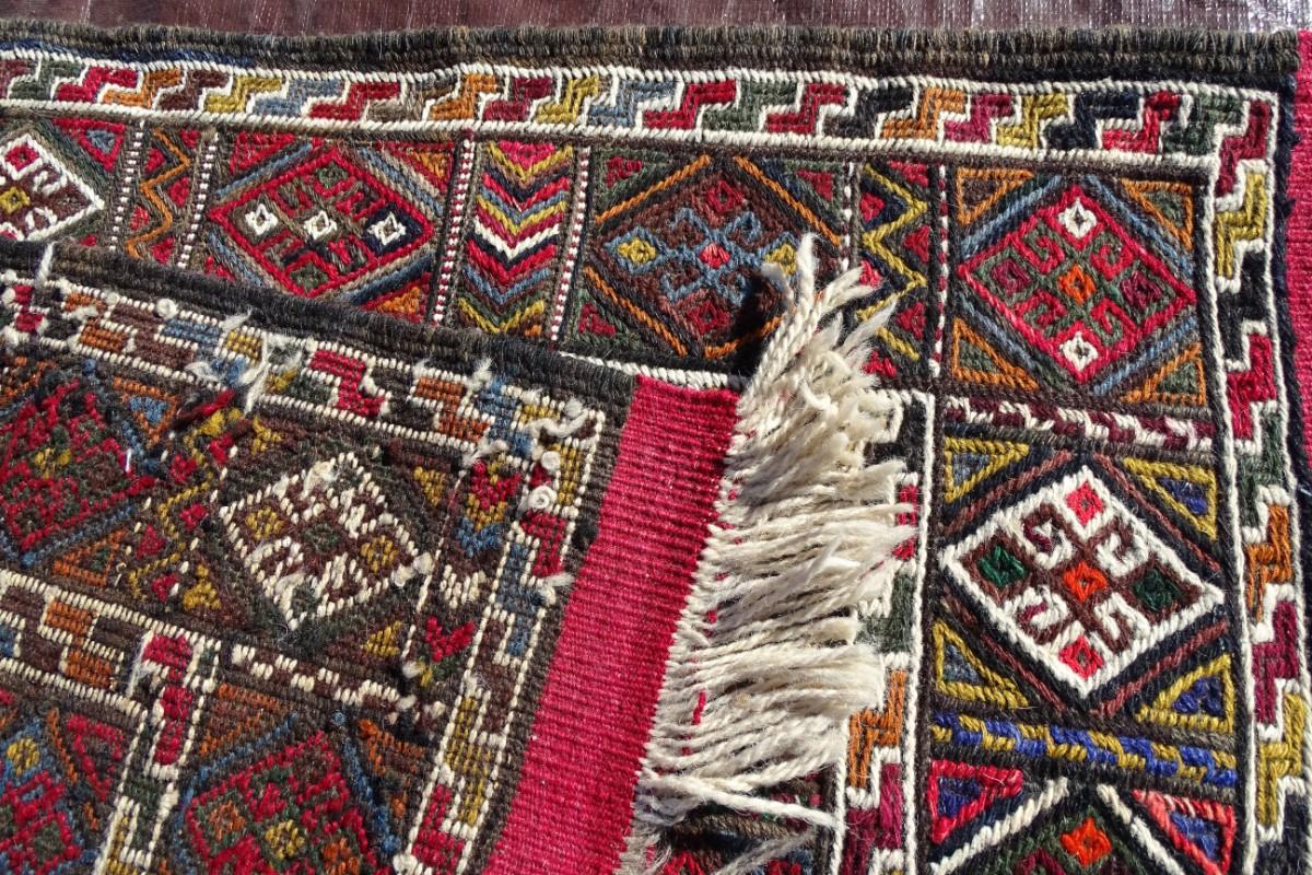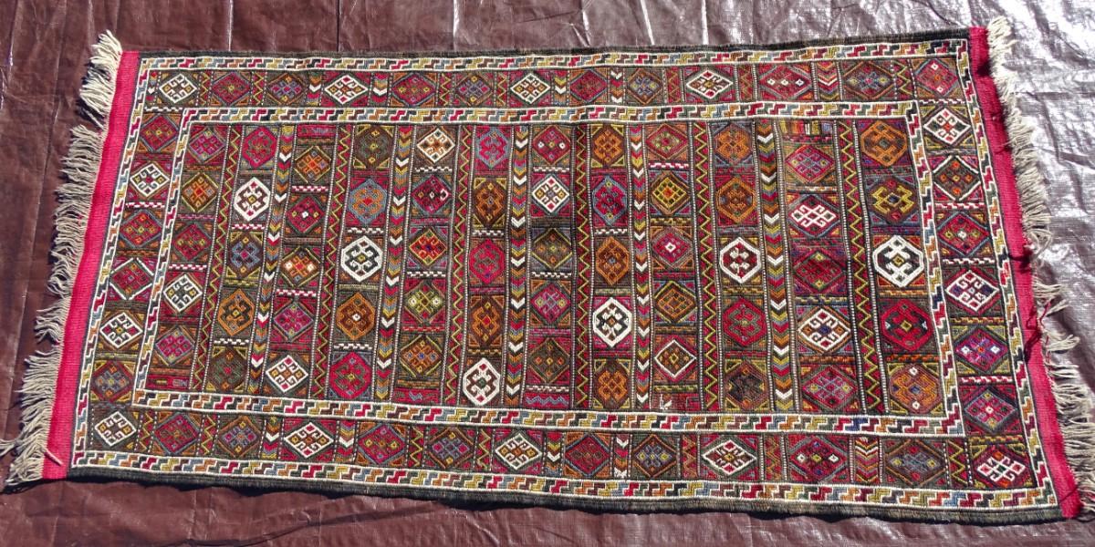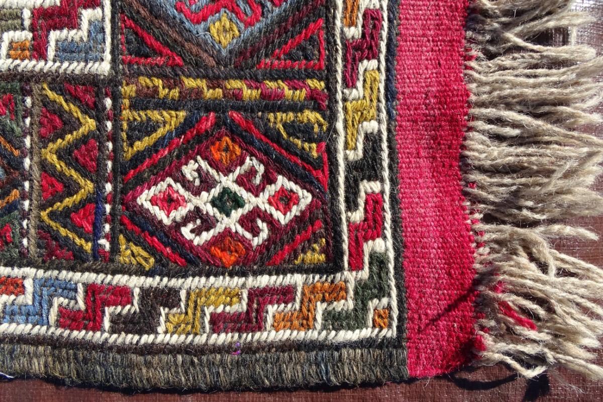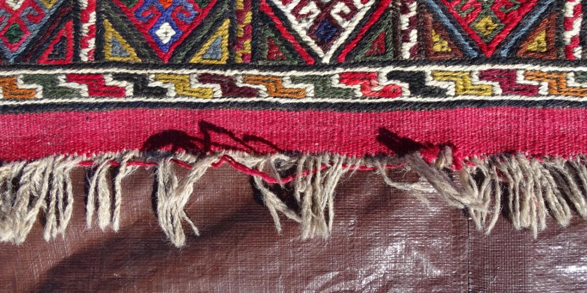 Red and brown tones Turkish wool rug; flat weave, hand made