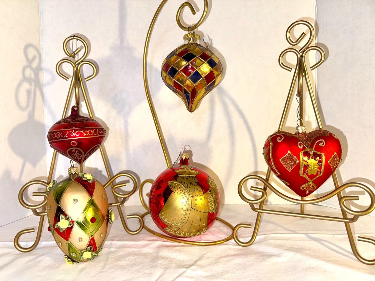 Red and Gold Some Mouth Blown Christmas Ornaments Lot of 5
