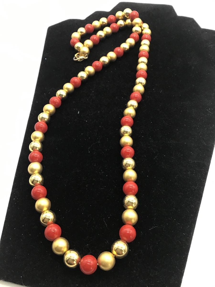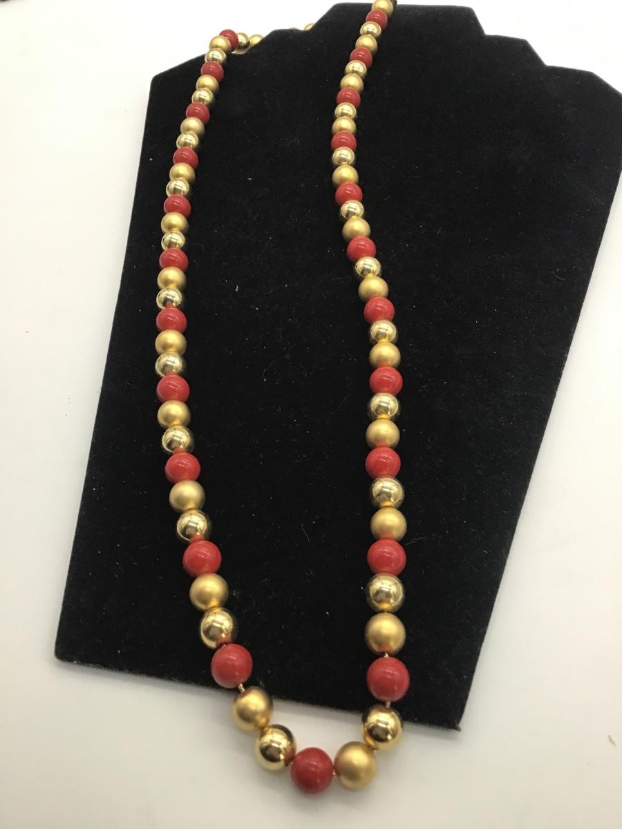 Red and gold tone faux Pearl necklace