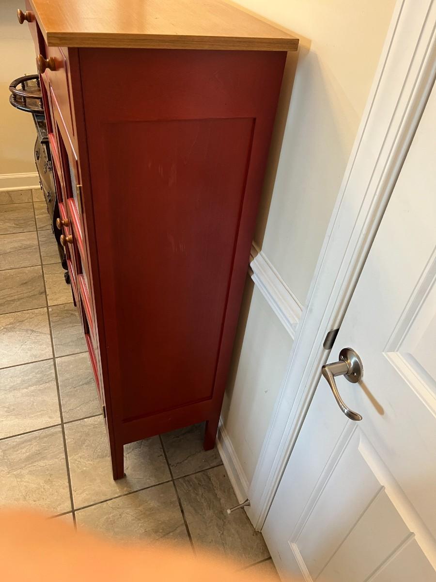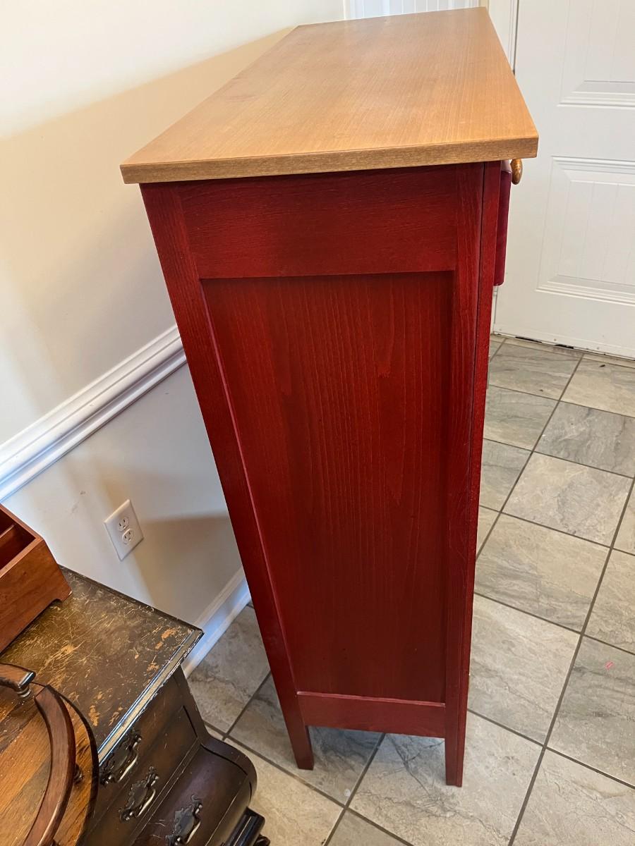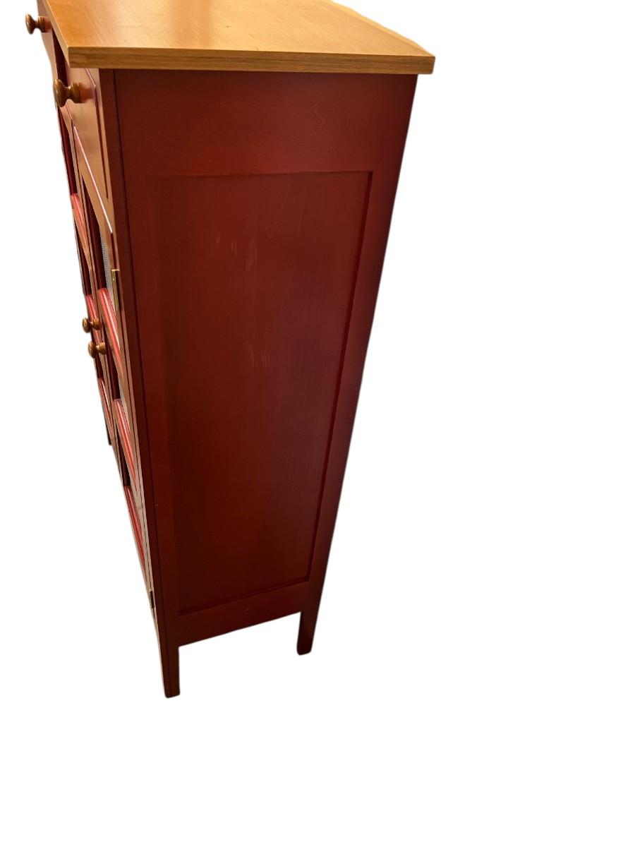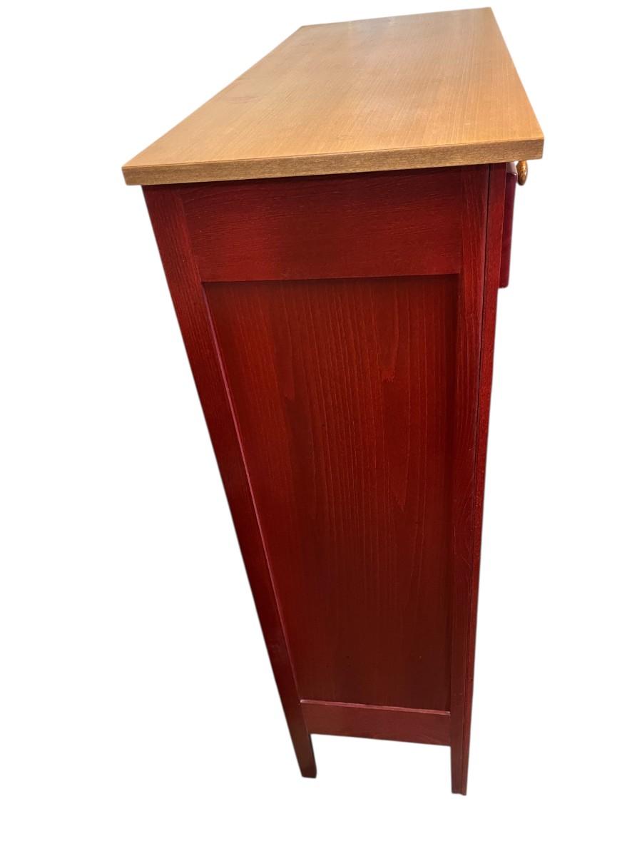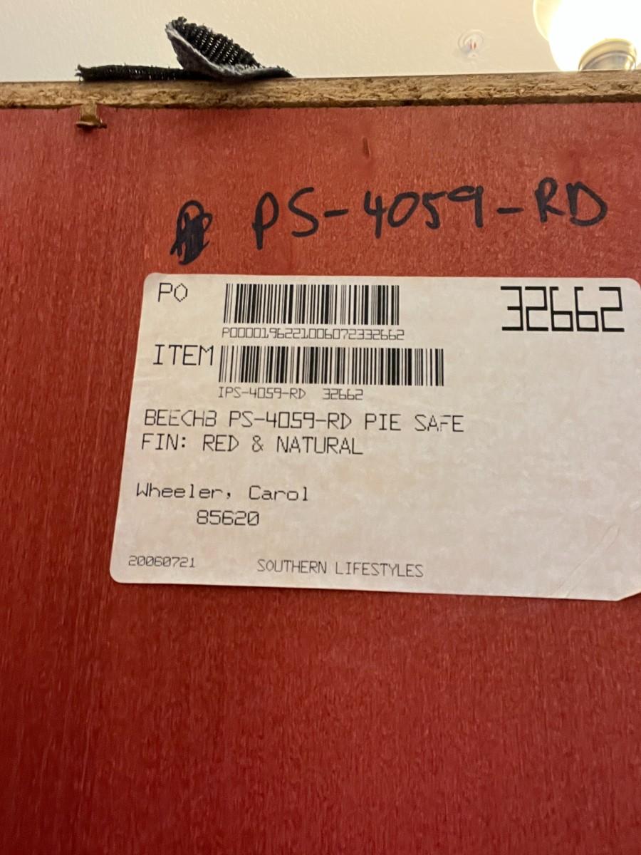 Red and Natural Finish Pie Safe with Tin Inserts and Two Drawers By Southern Lifestyles