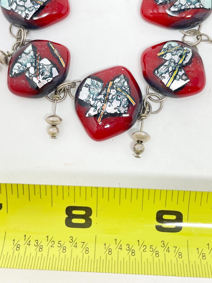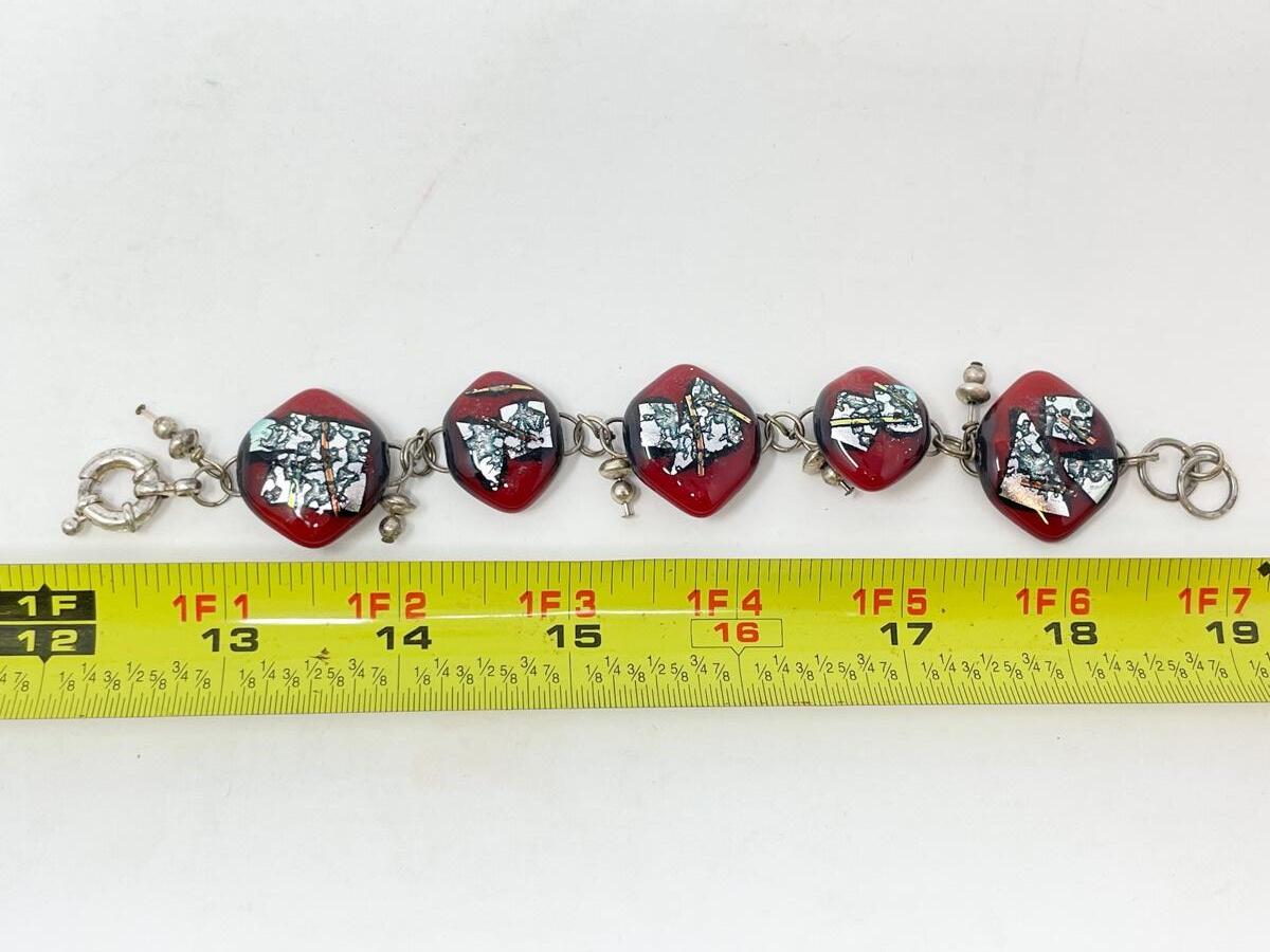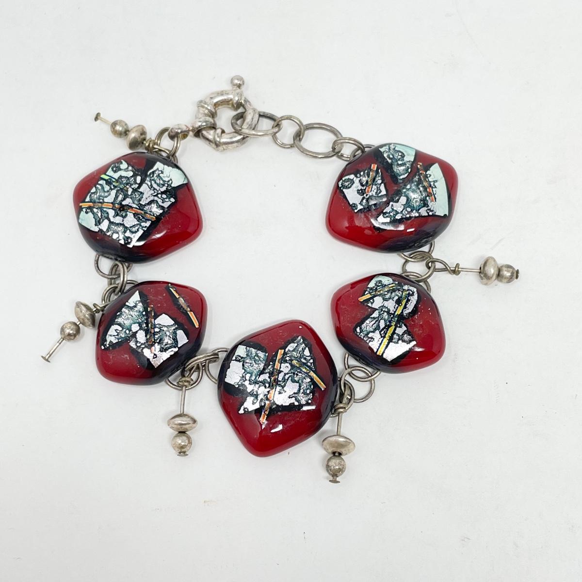 RED AND SILVER GLASS BEAD BRACELET