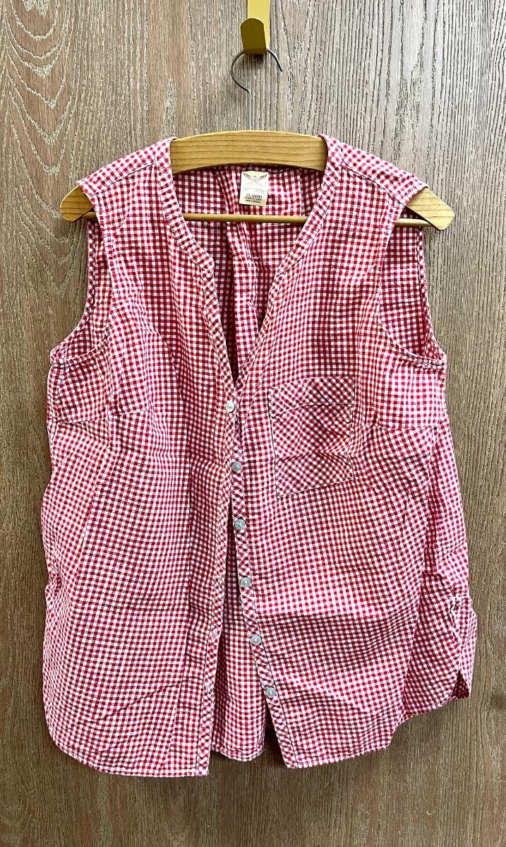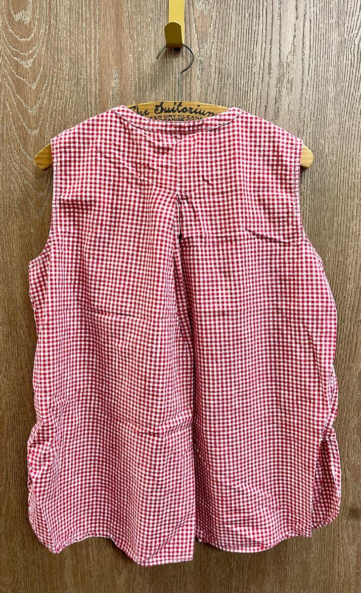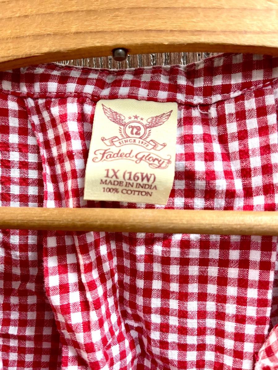 Red and white checkered pattern womens buttoned shirt smock Size 1X (16W)