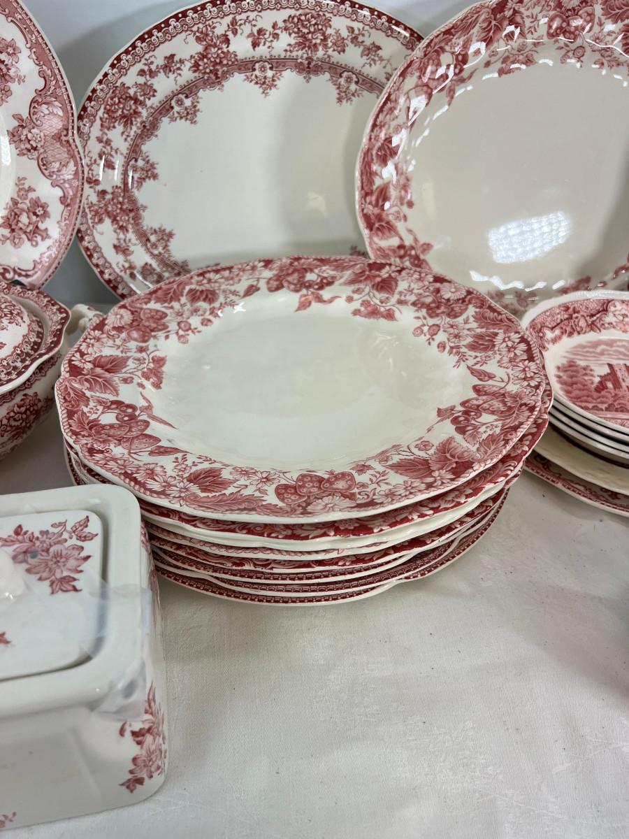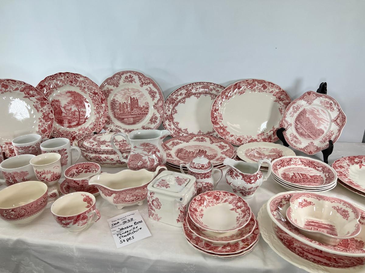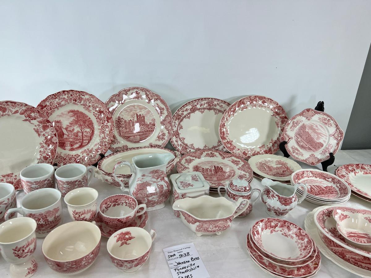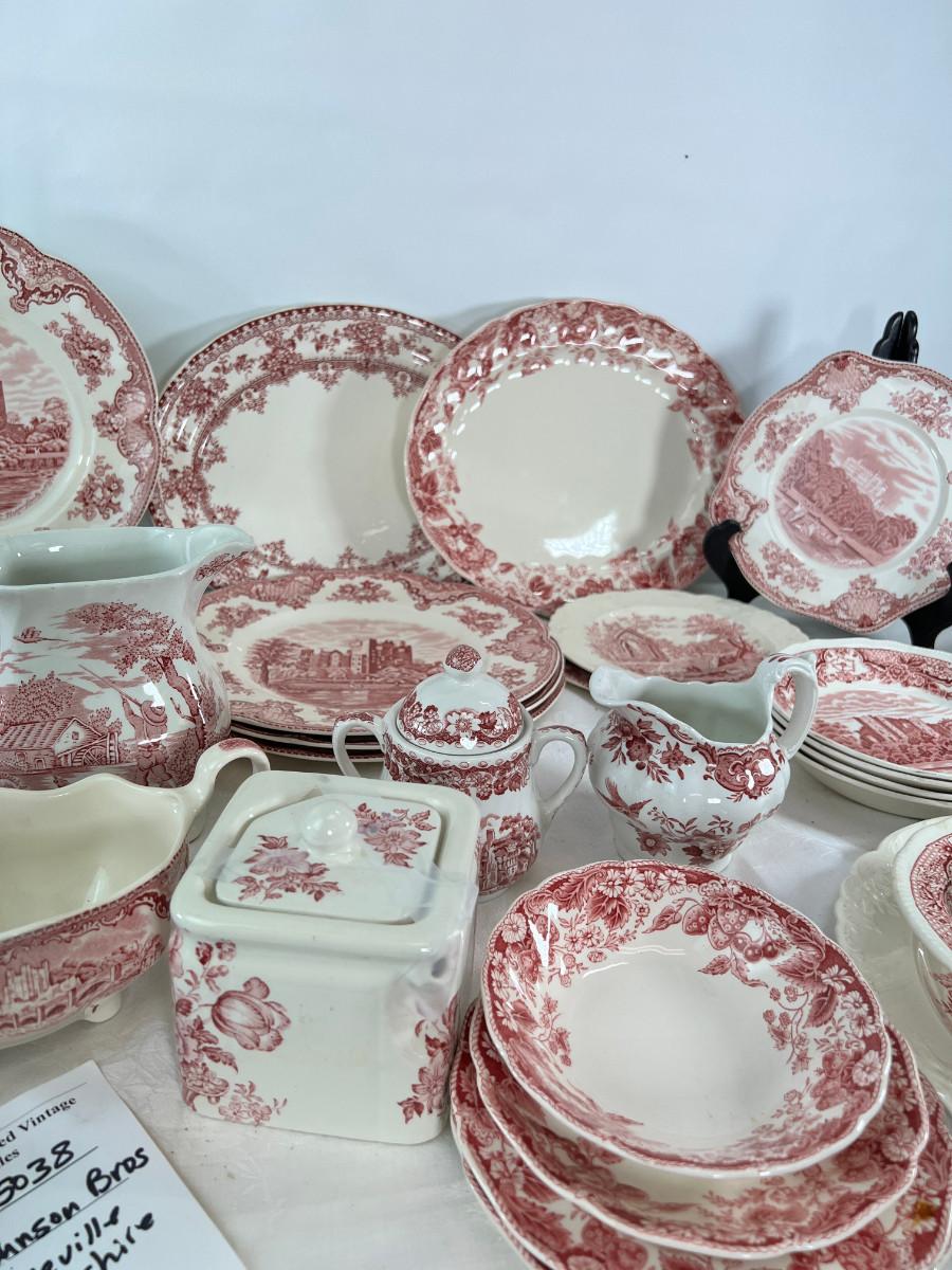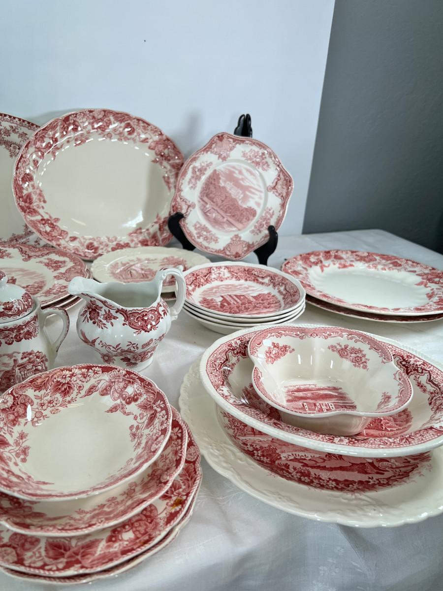 Vintage Johnson brothers, Staffordshire ceramics, and other collectible red white designs