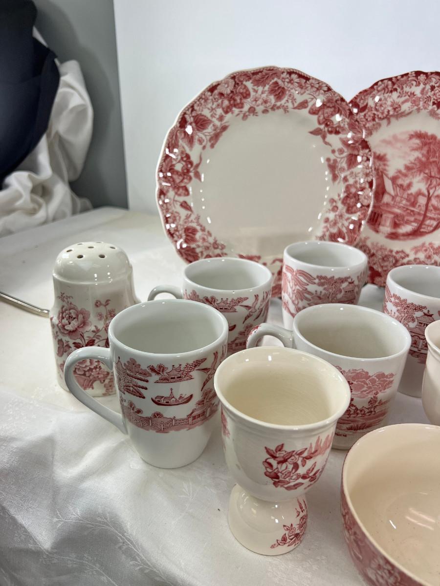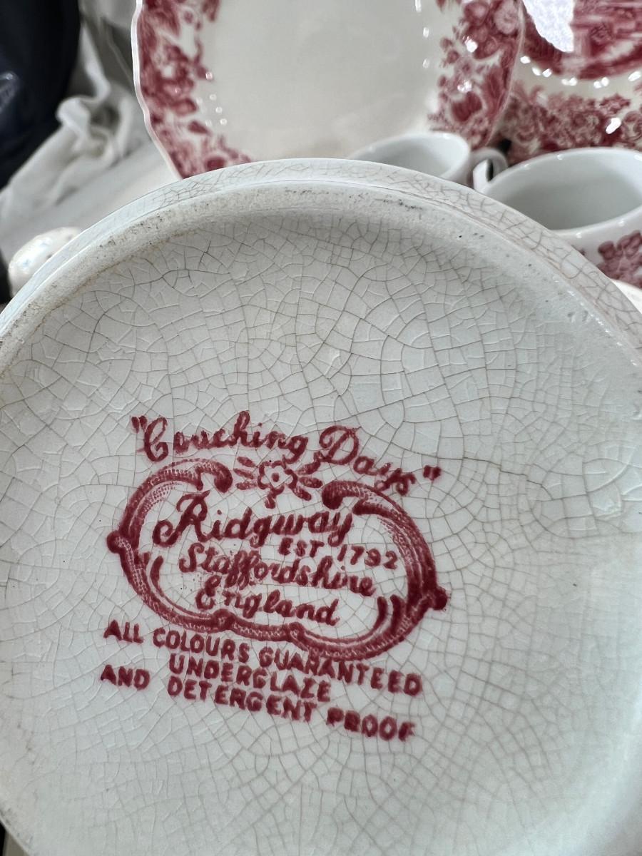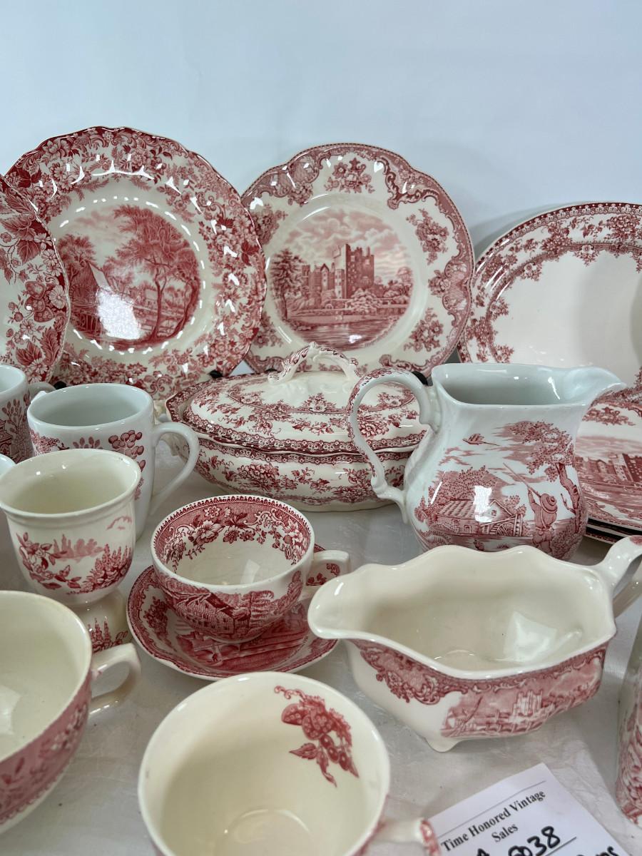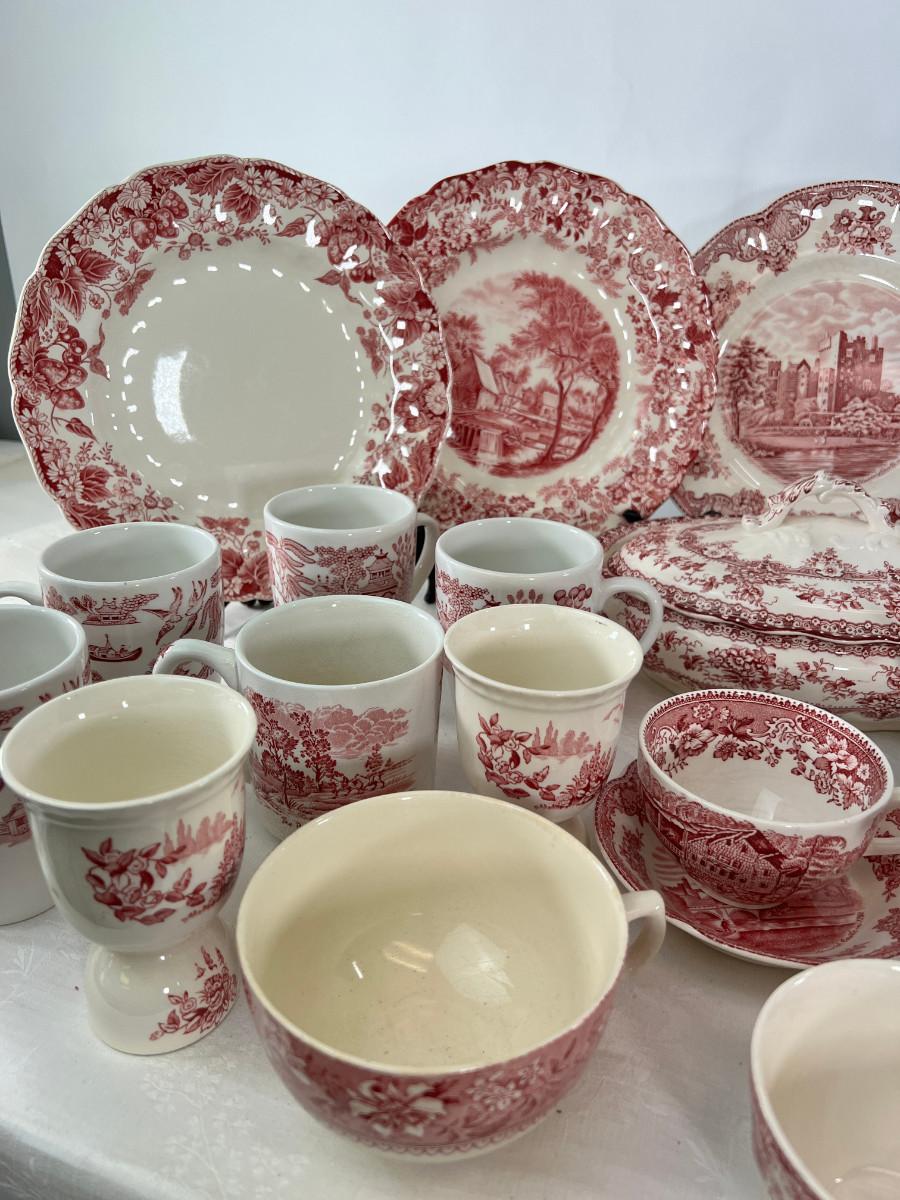 Vintage Johnson brothers, Staffordshire ceramics, and other collectible red white designs