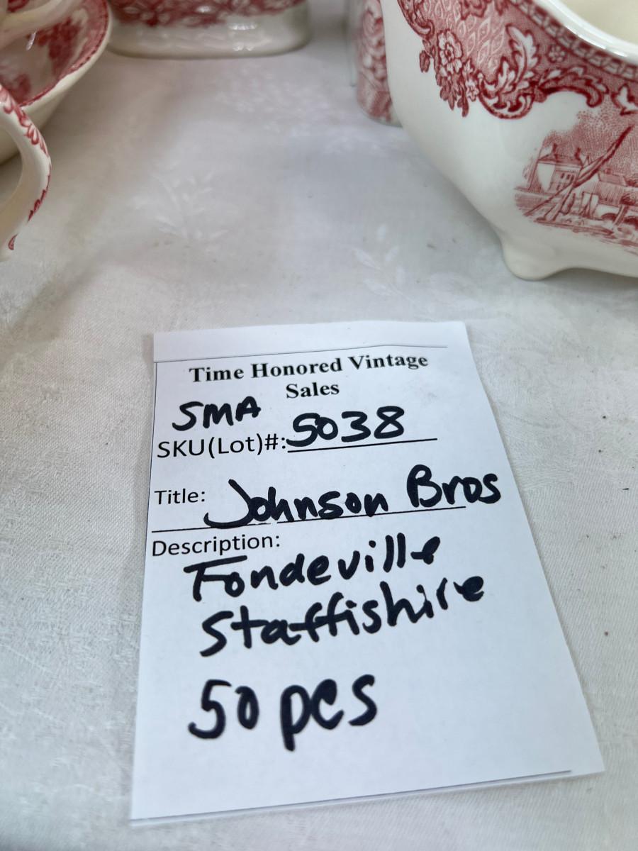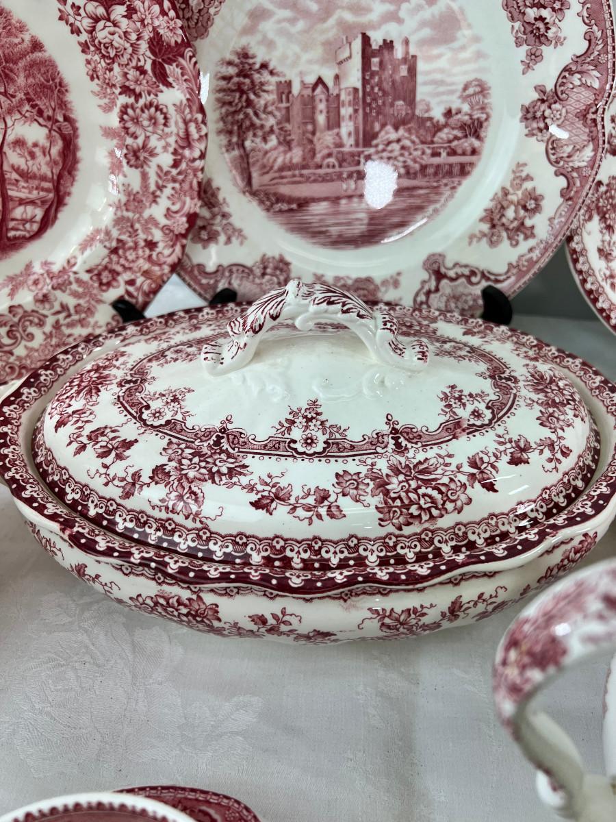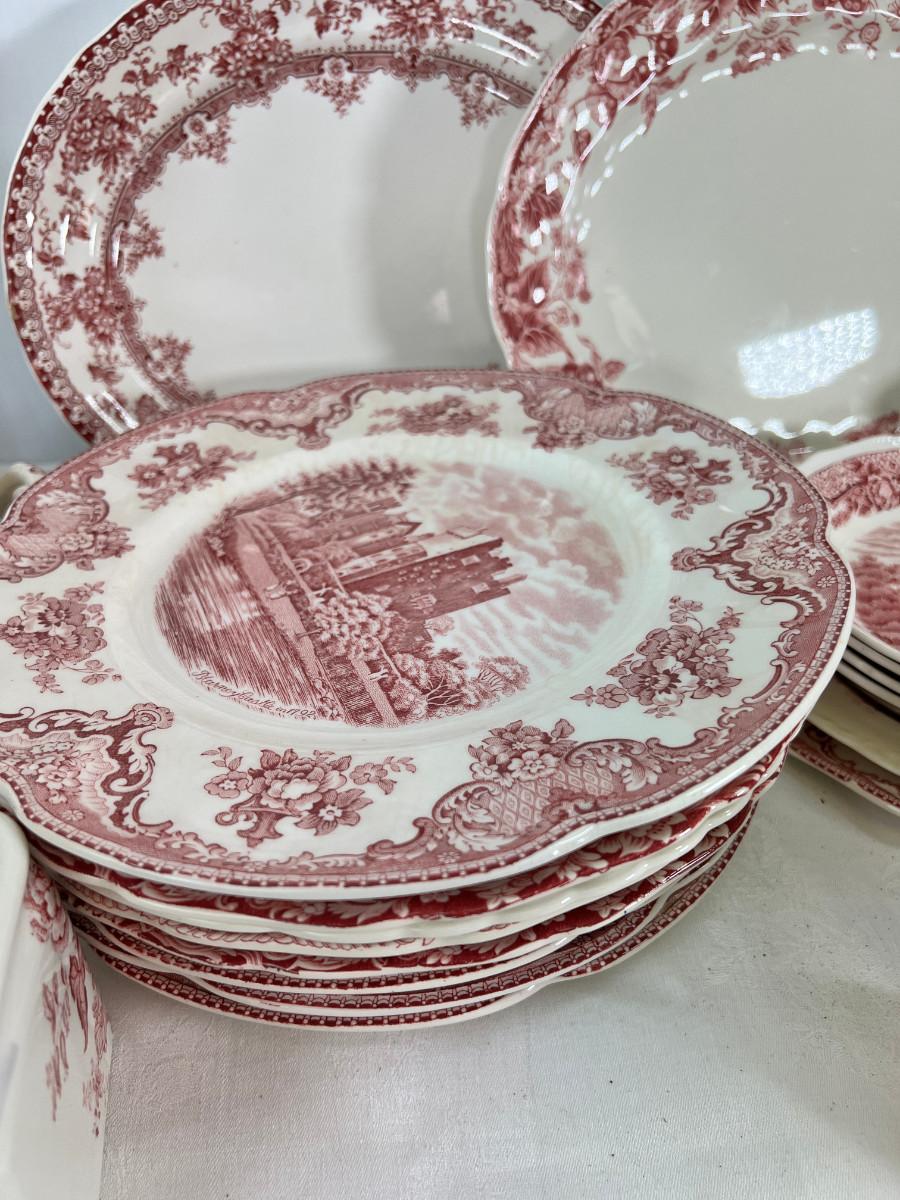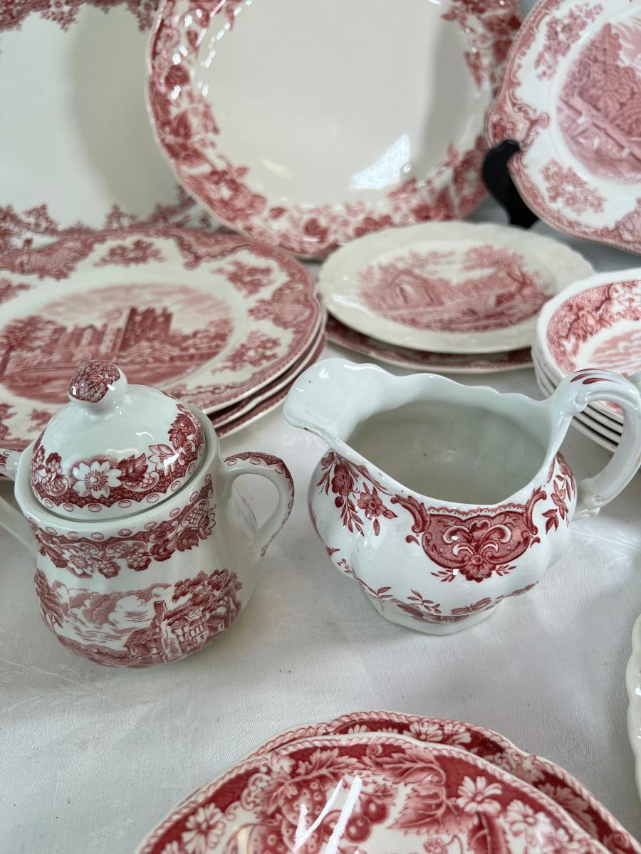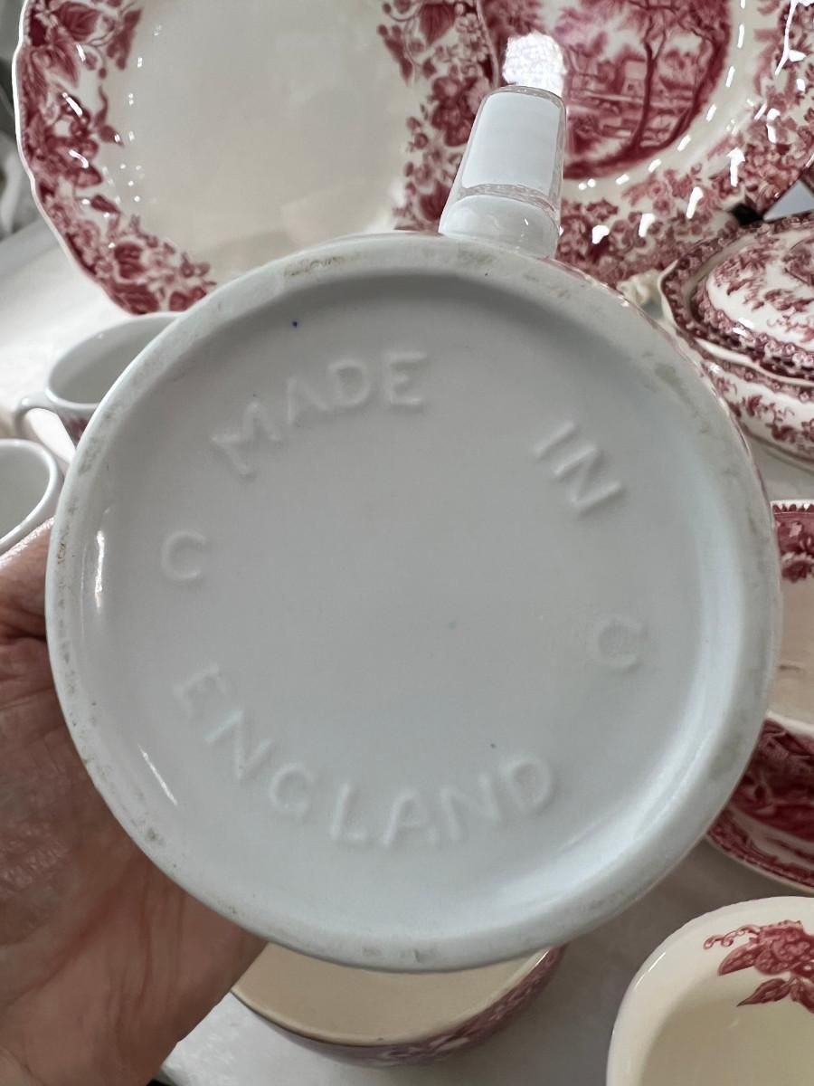 Vintage Johnson brothers, Staffordshire ceramics, and other collectible red white designs