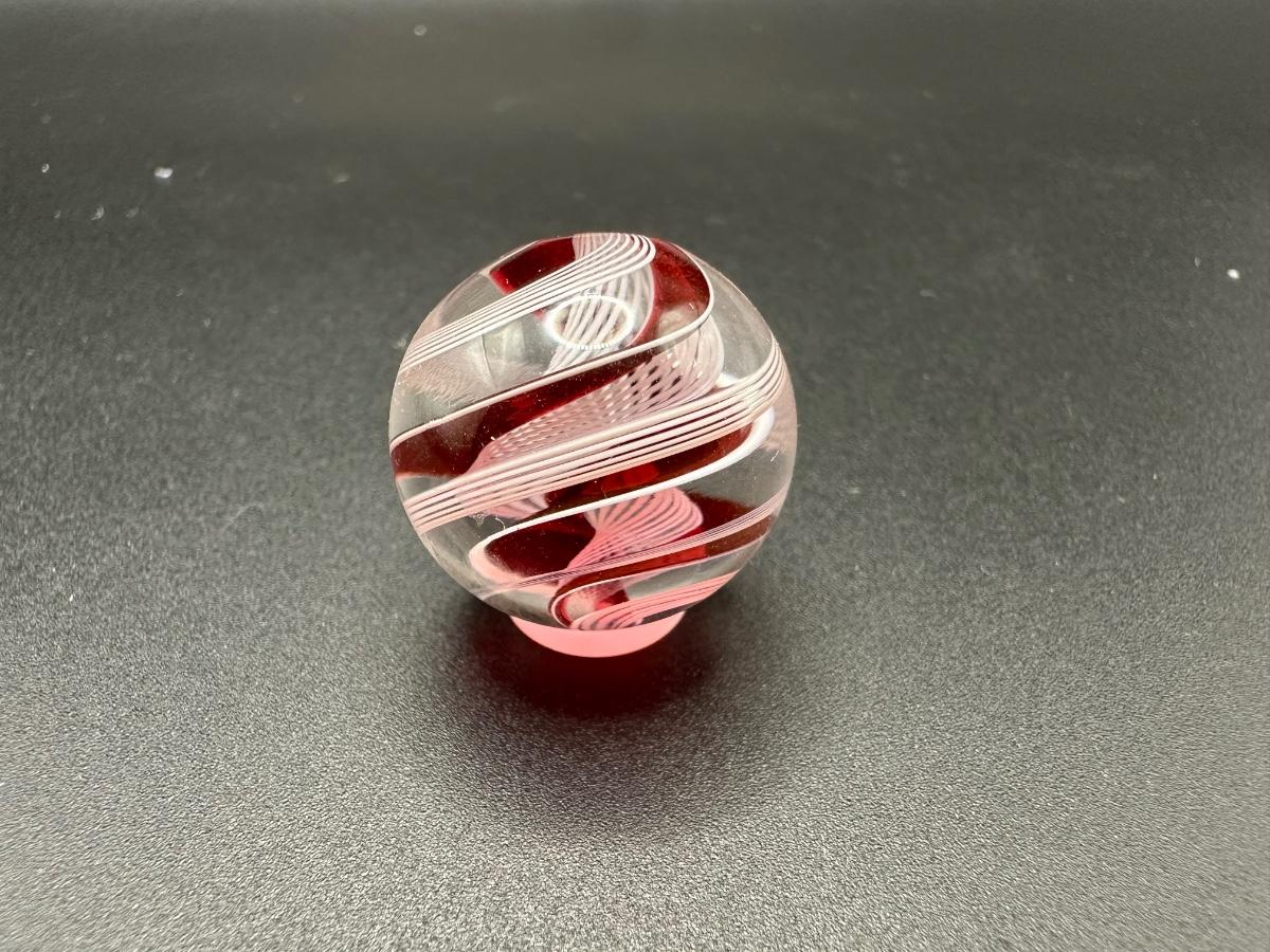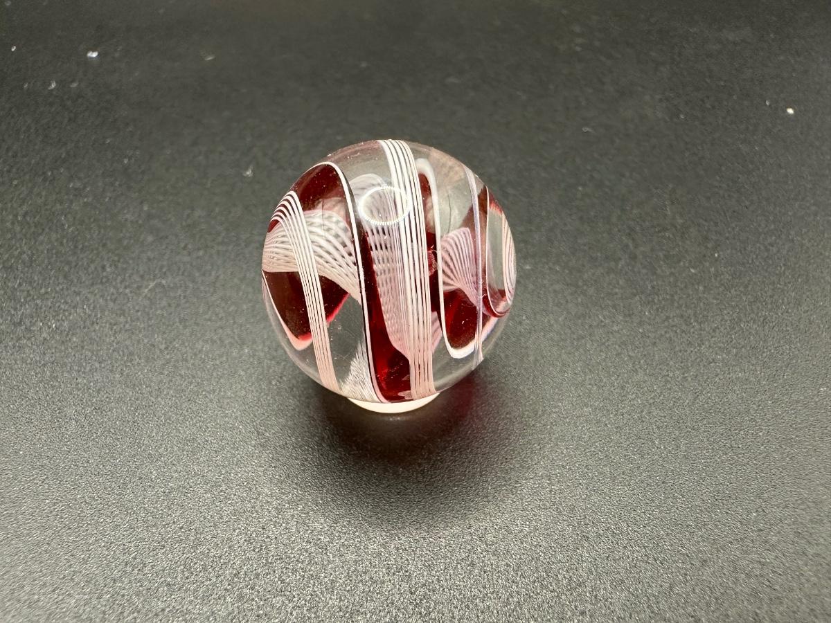 RED AND WHITE LATTICINIO SWIRL CORE MARBLE