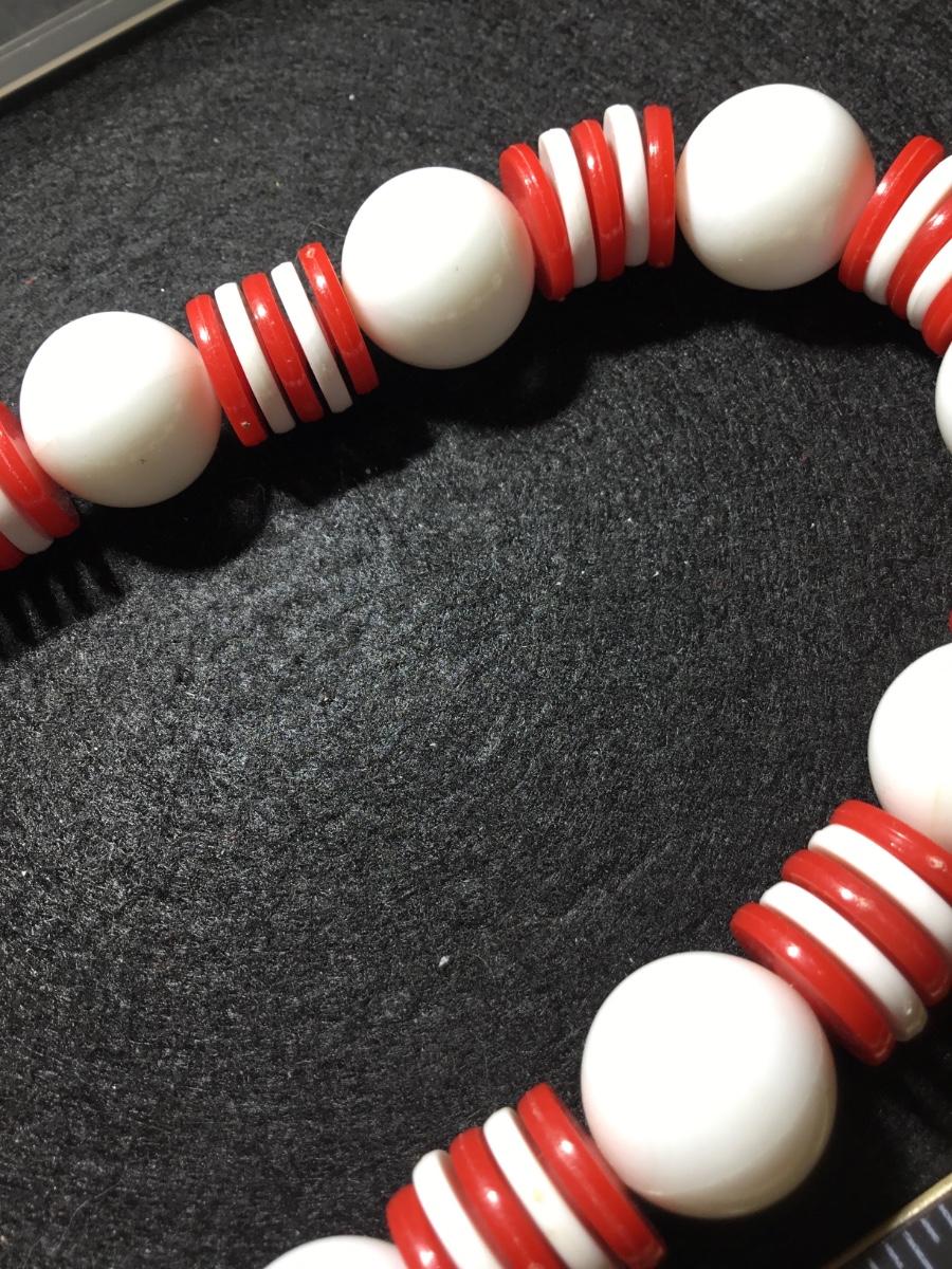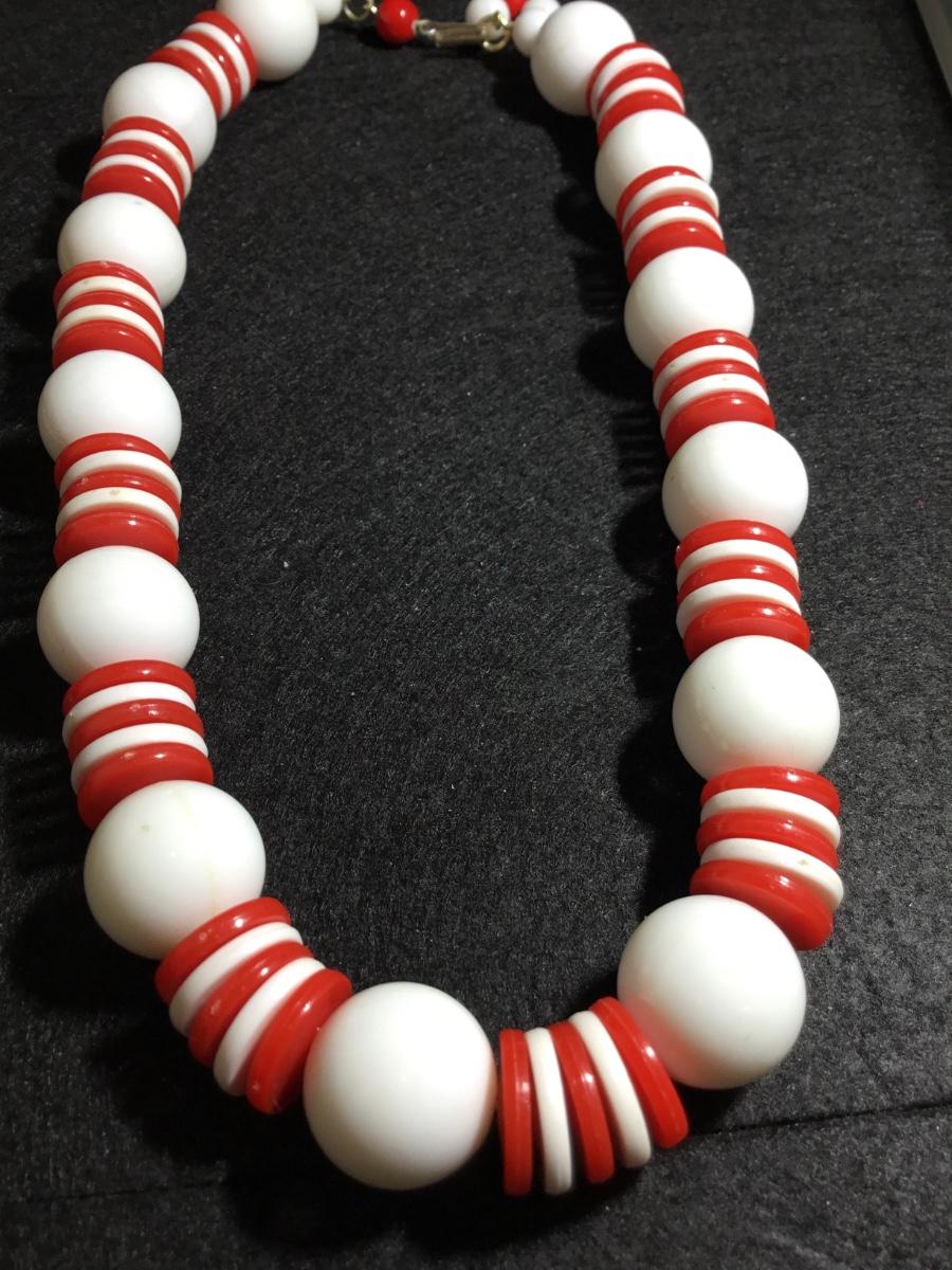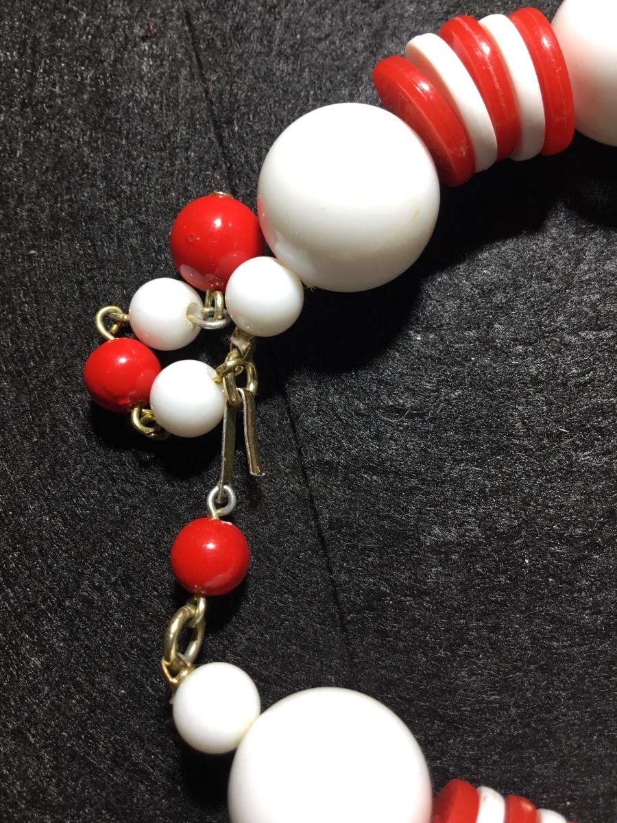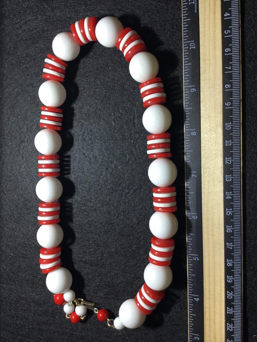 Red and white plastic beaded statement vintage mid century era necklace