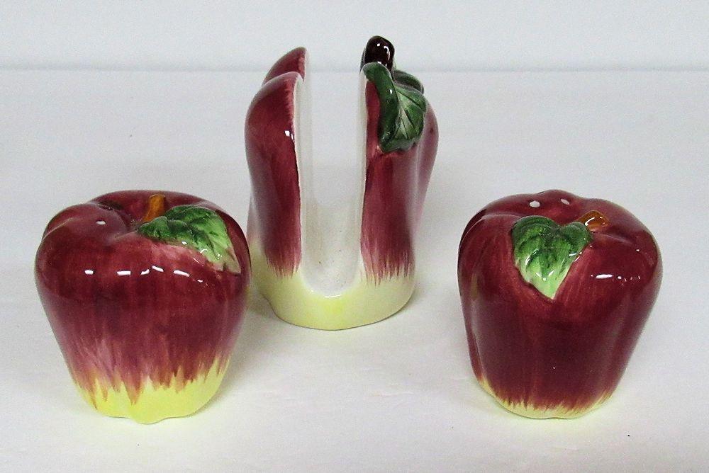 Red Apples Salt and Pepper and Napkin Holder Set