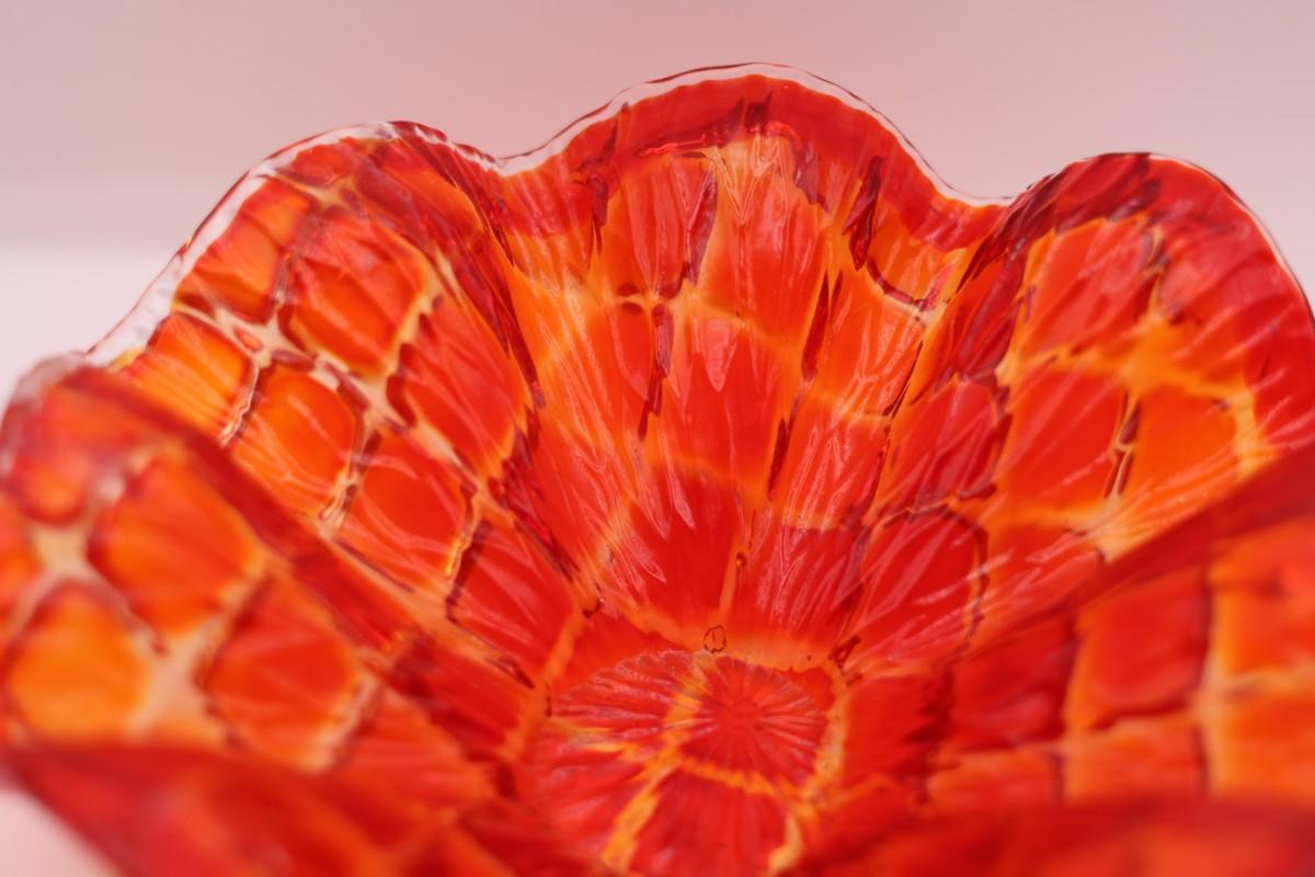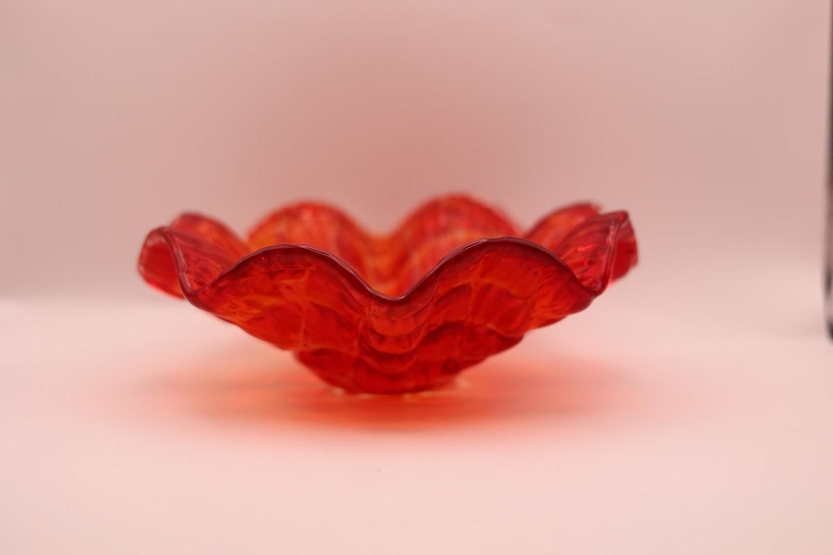 Red Art Glass Ruffled Bowl