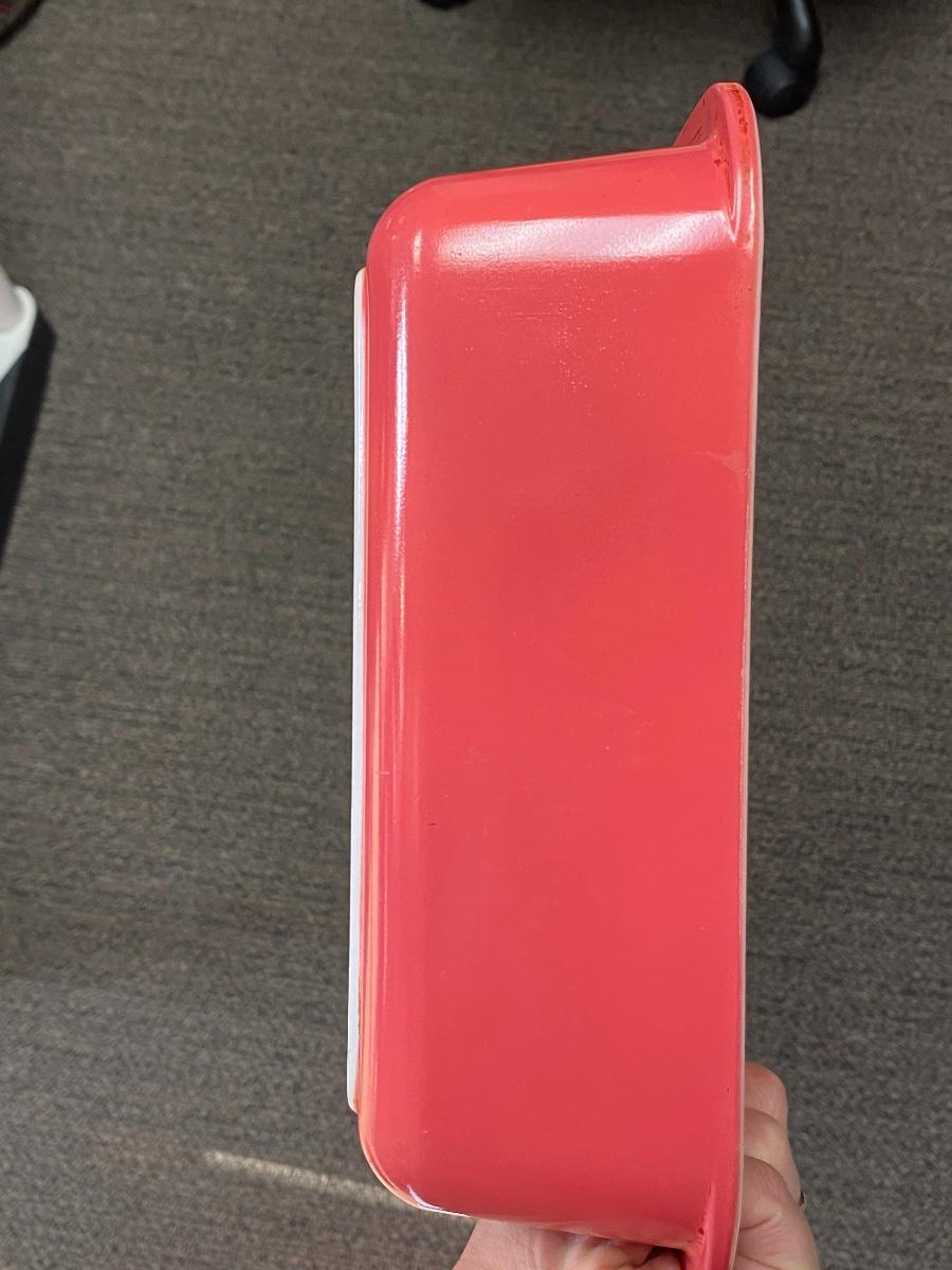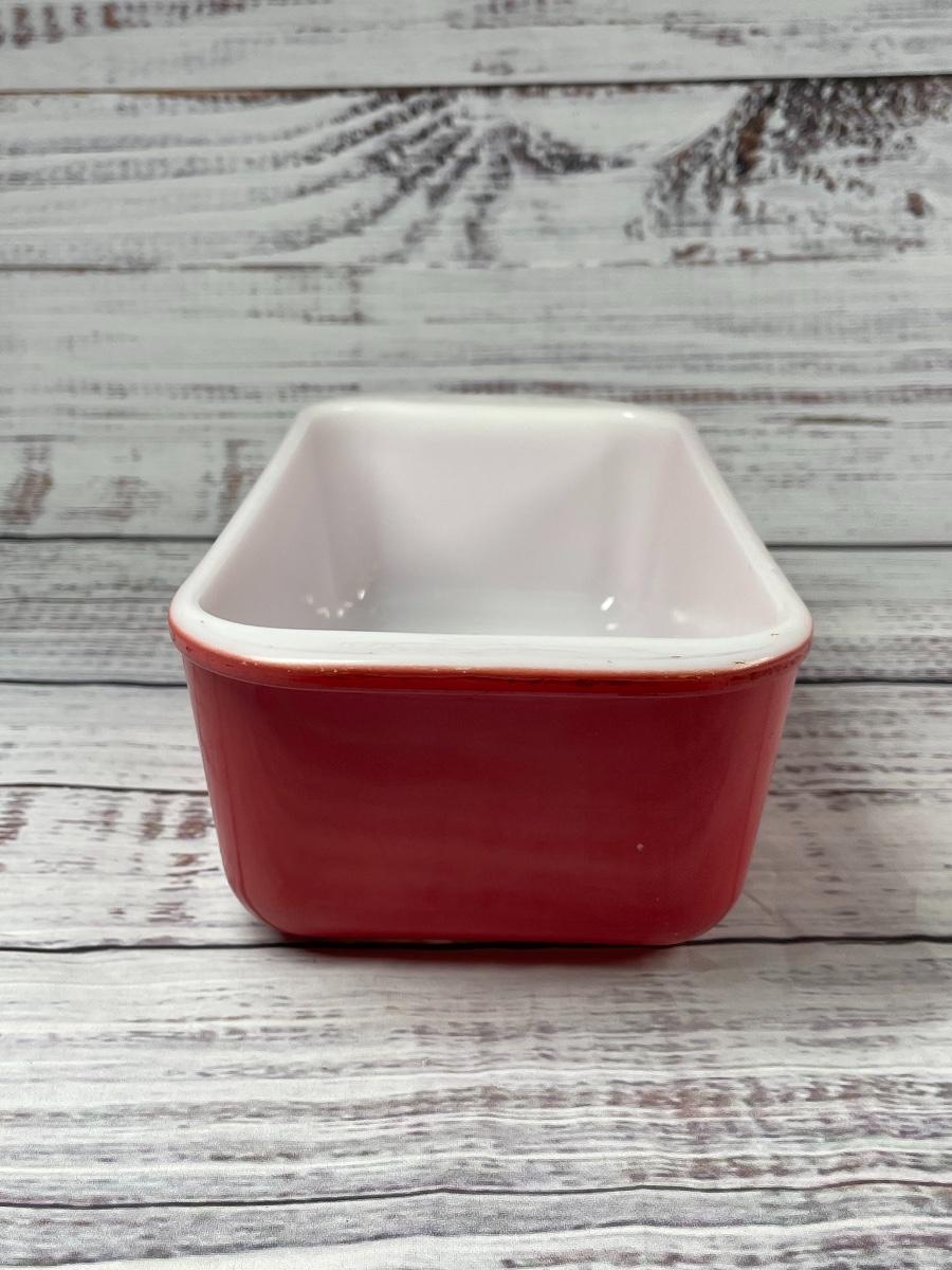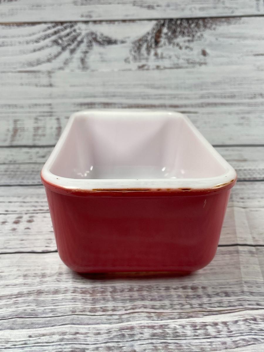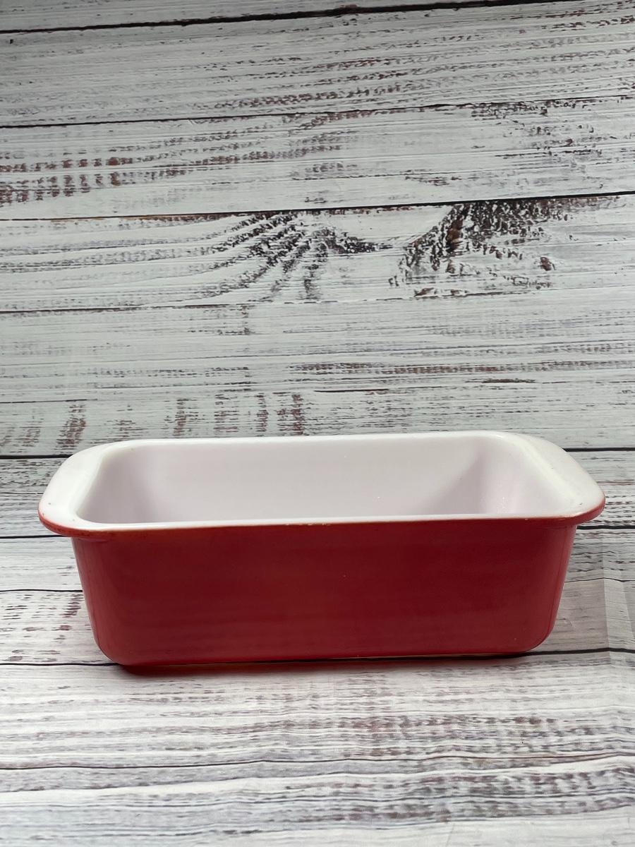 Vintage pink flamingo Pyrex bread/loaf pan. In a solid watermelon pink color. 1.5qt size. Item is in good condition. There is some faint discoloration on the item due to years of owning.