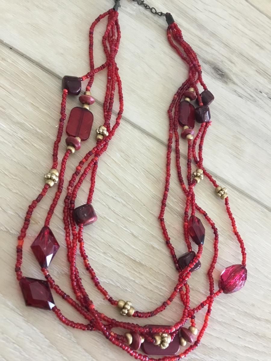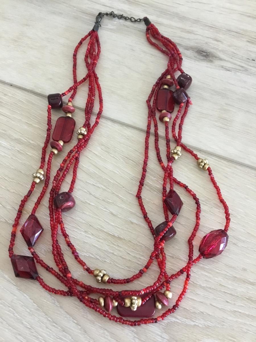 Red beaded multi layer necklace