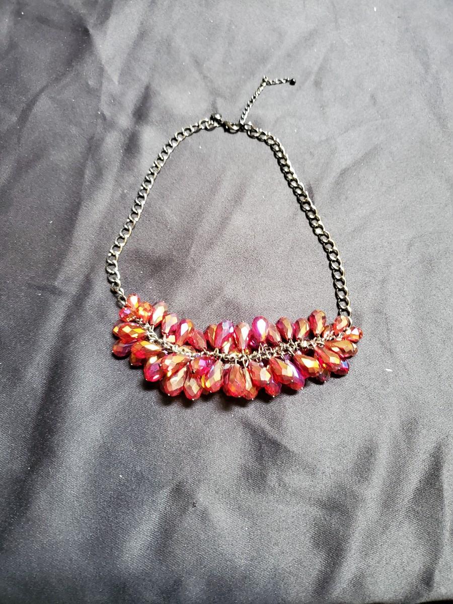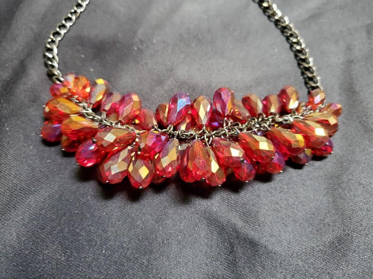 Sparkling Red Beaded Tear Drop Necklace Choker 18" With Extender