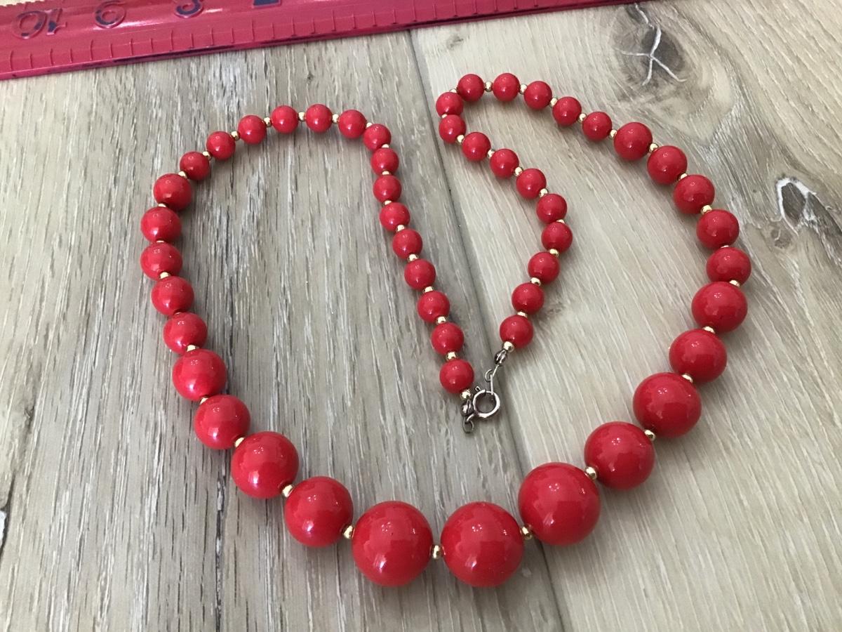 Red Beaded Necklace Vintage Costume