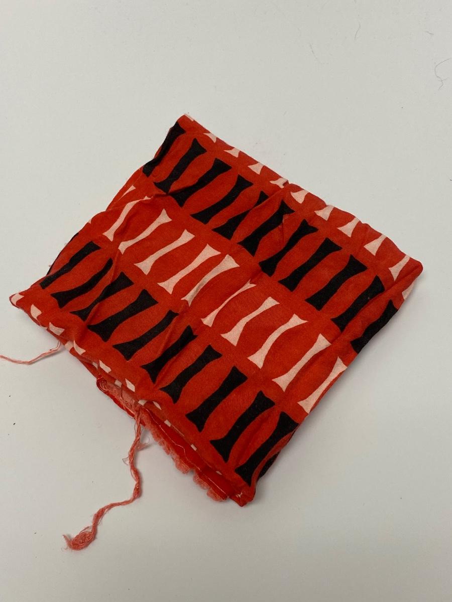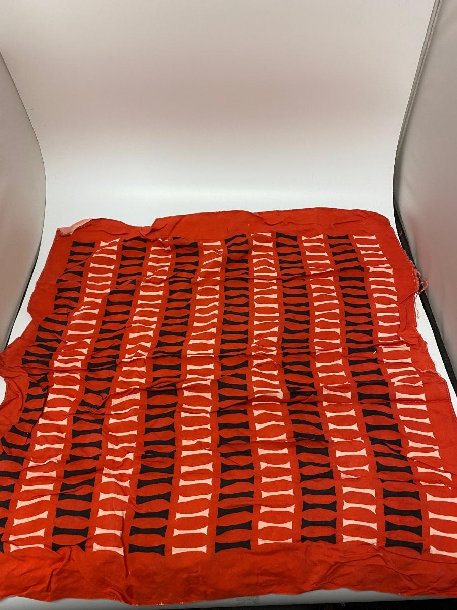 Red, Black, and White Geometric Mod Retro Scarf. About 24" square, rough edges.