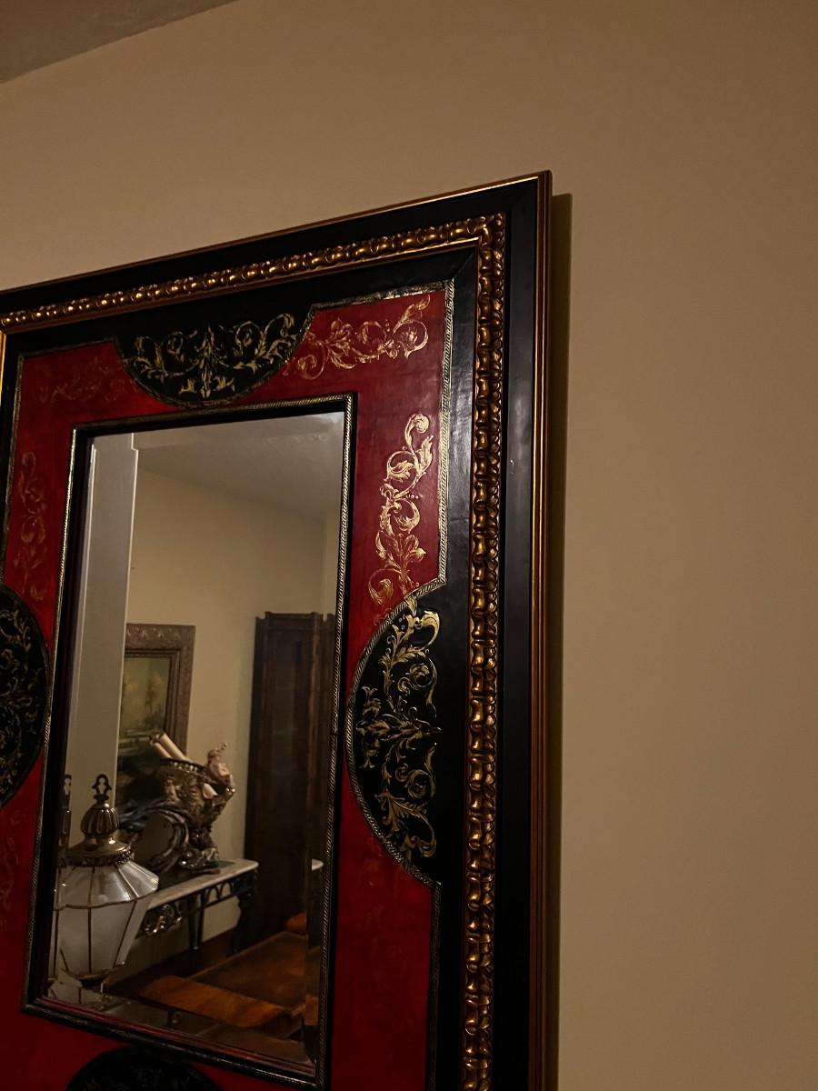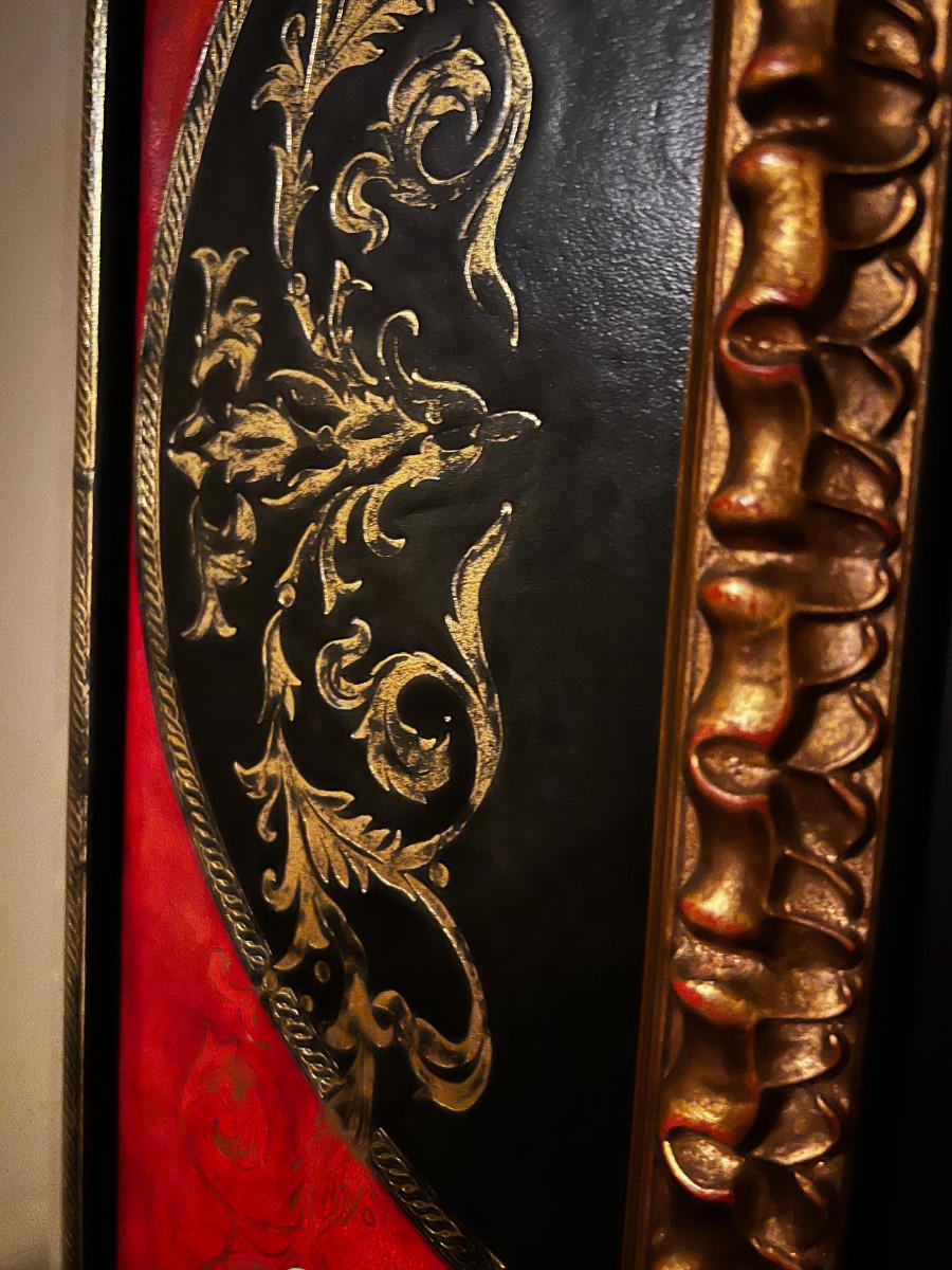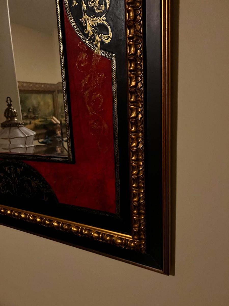 Red & Black Leather & Gilded Mirror, Highly Un-usual!