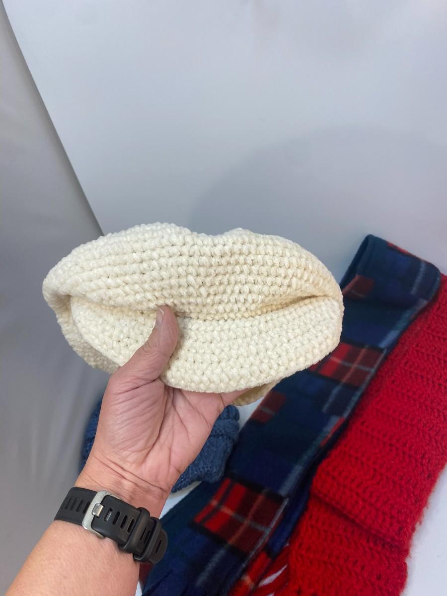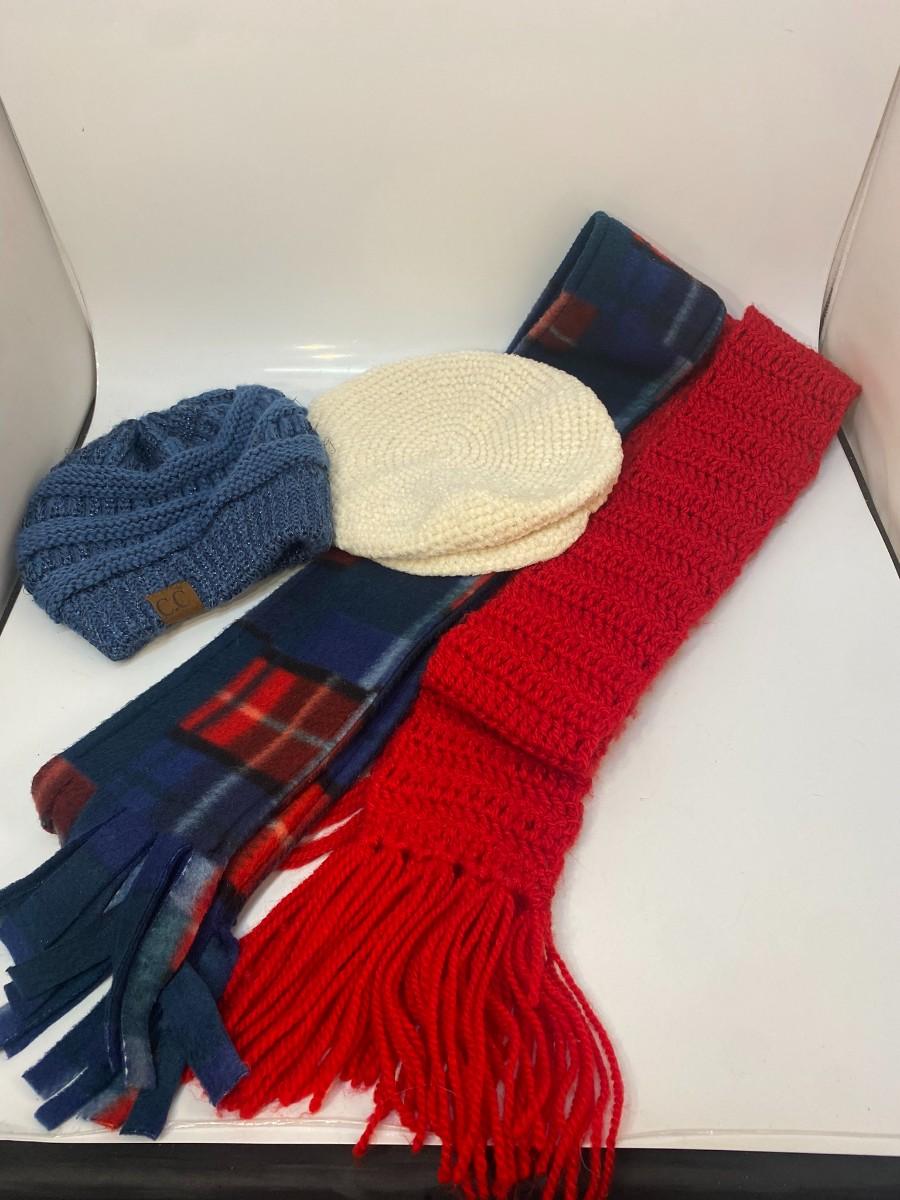 Red & Blue Warm Fleece Crochet Scarf & Hat Set. Two scarves and 2 hats. All in good condition.