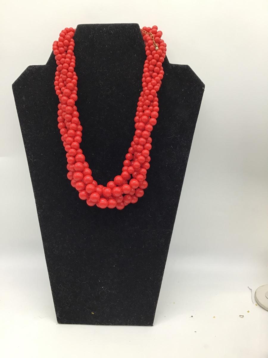 Red bulky beaded necklace