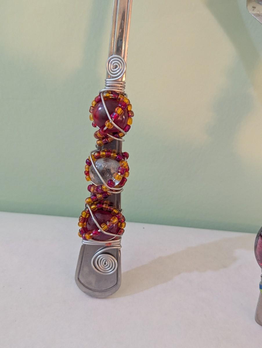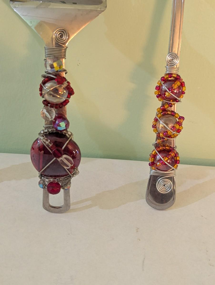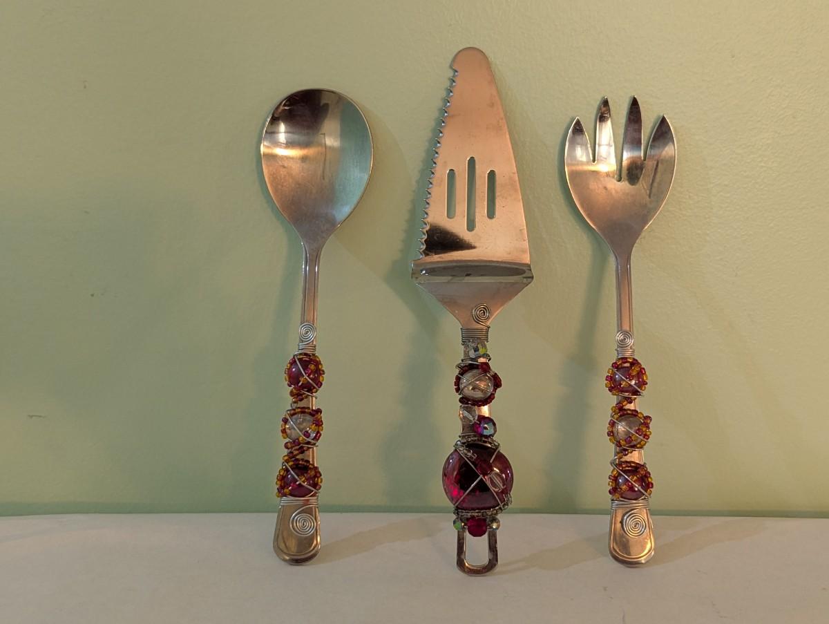 Red Burgundy Gold Wire 3 Piece Beaded Serving Set (LR)