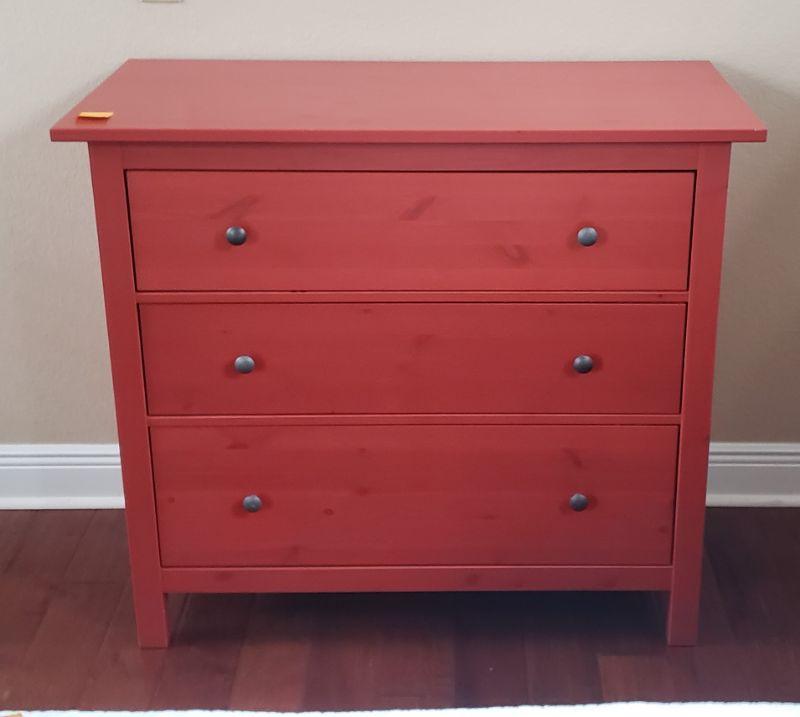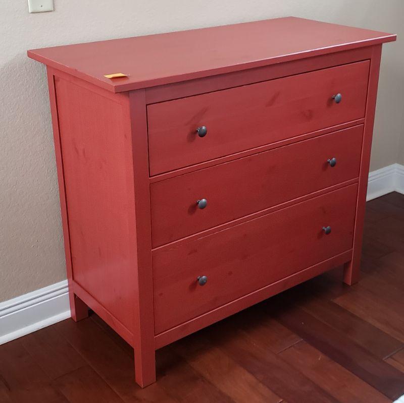 Red Wood 3 Drawer Cabinet, 43L X 20W X 38H