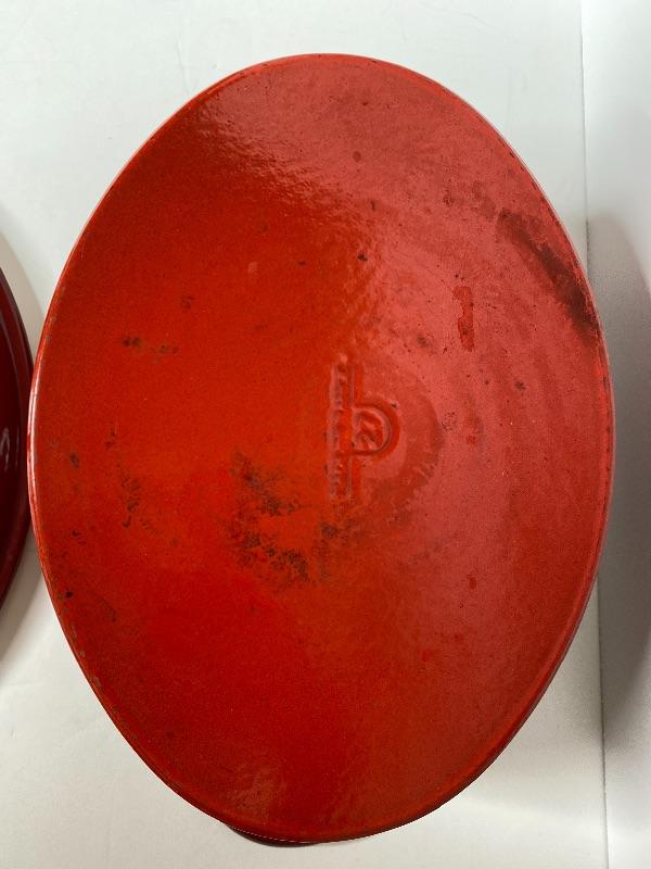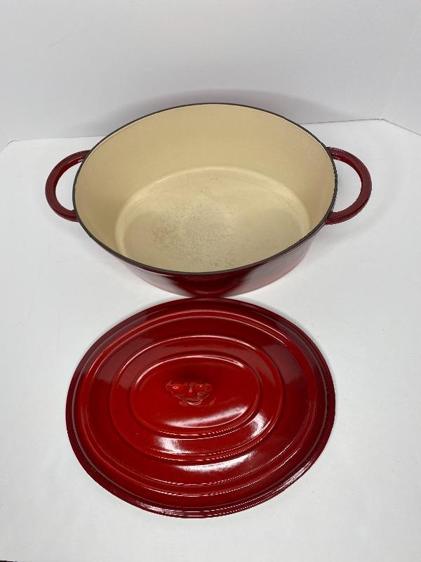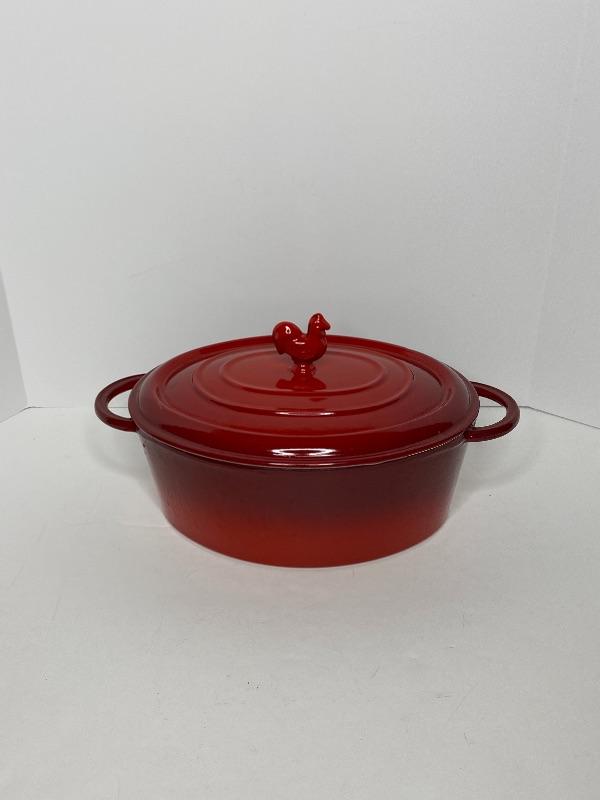 Red Cast Iron Enamel Coated Roaster with Rooster Handle