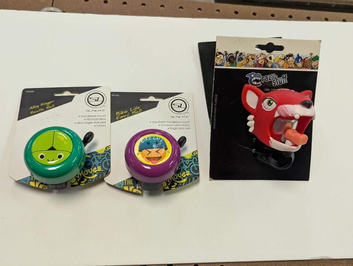 Red Cat Head Handle Bar Bell & Sunlite Emoji Bell