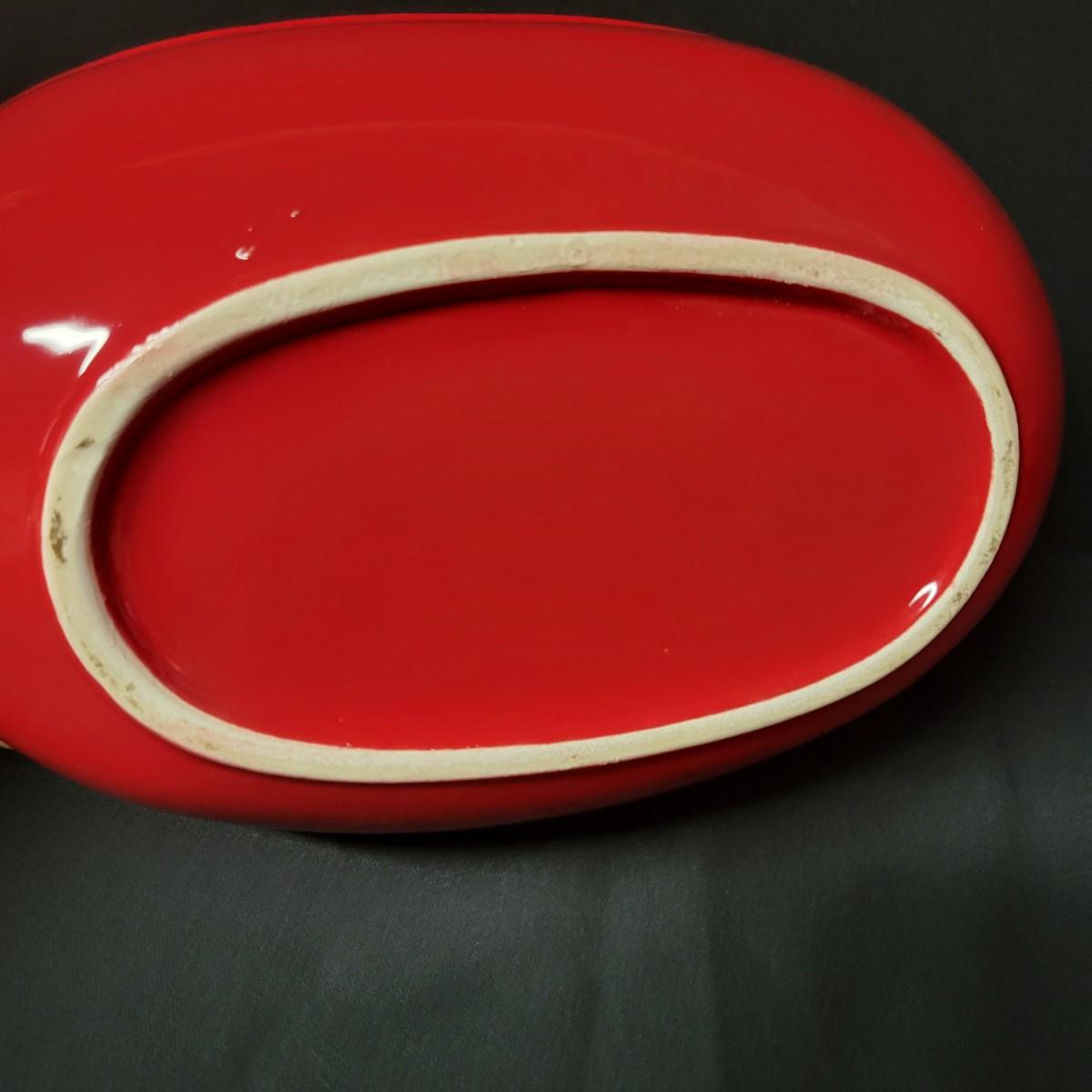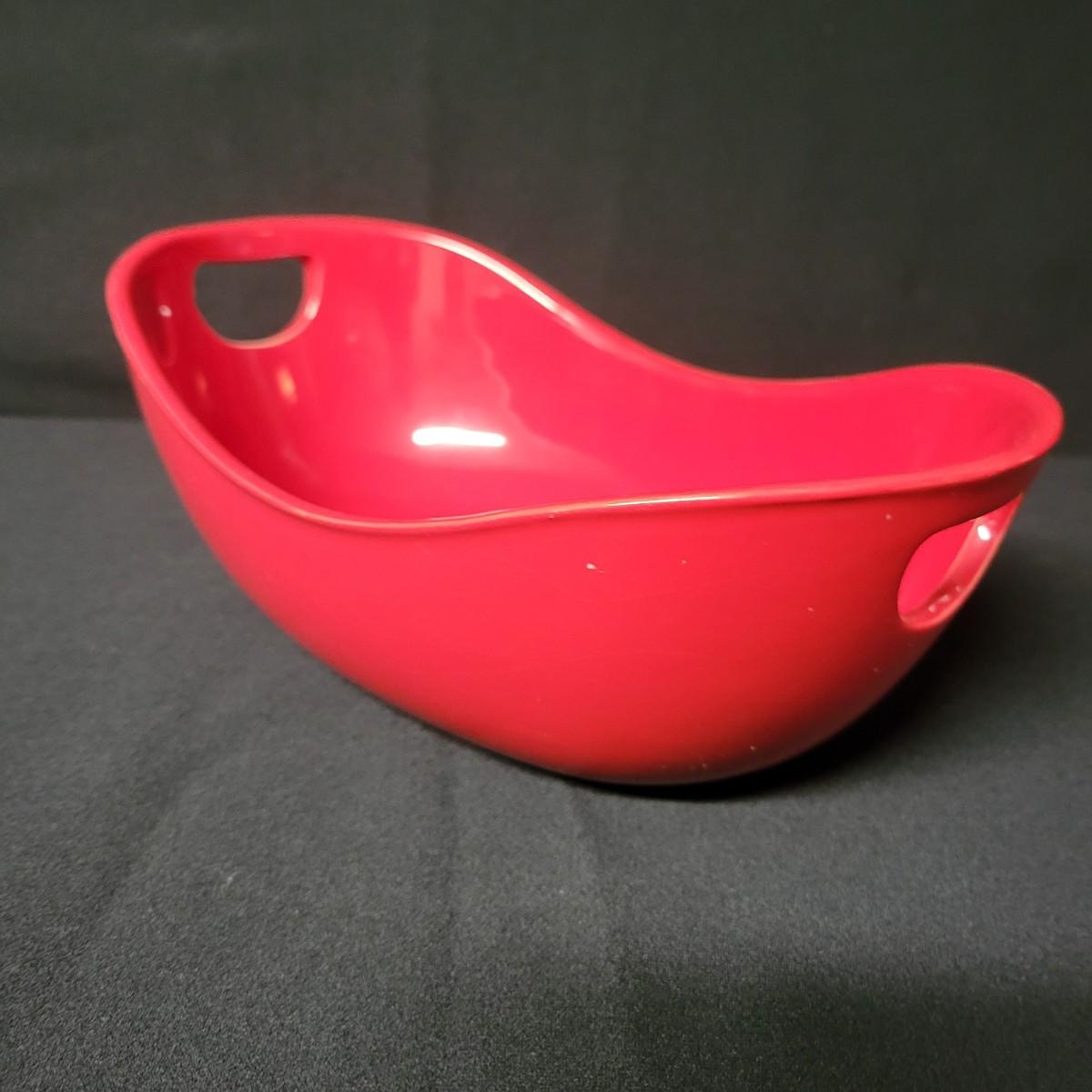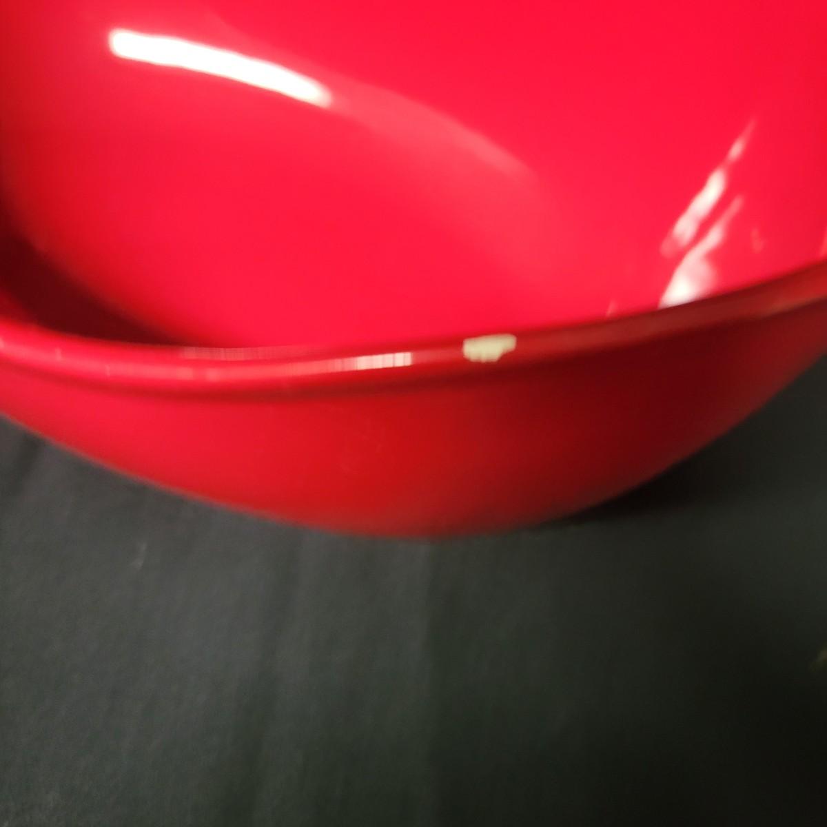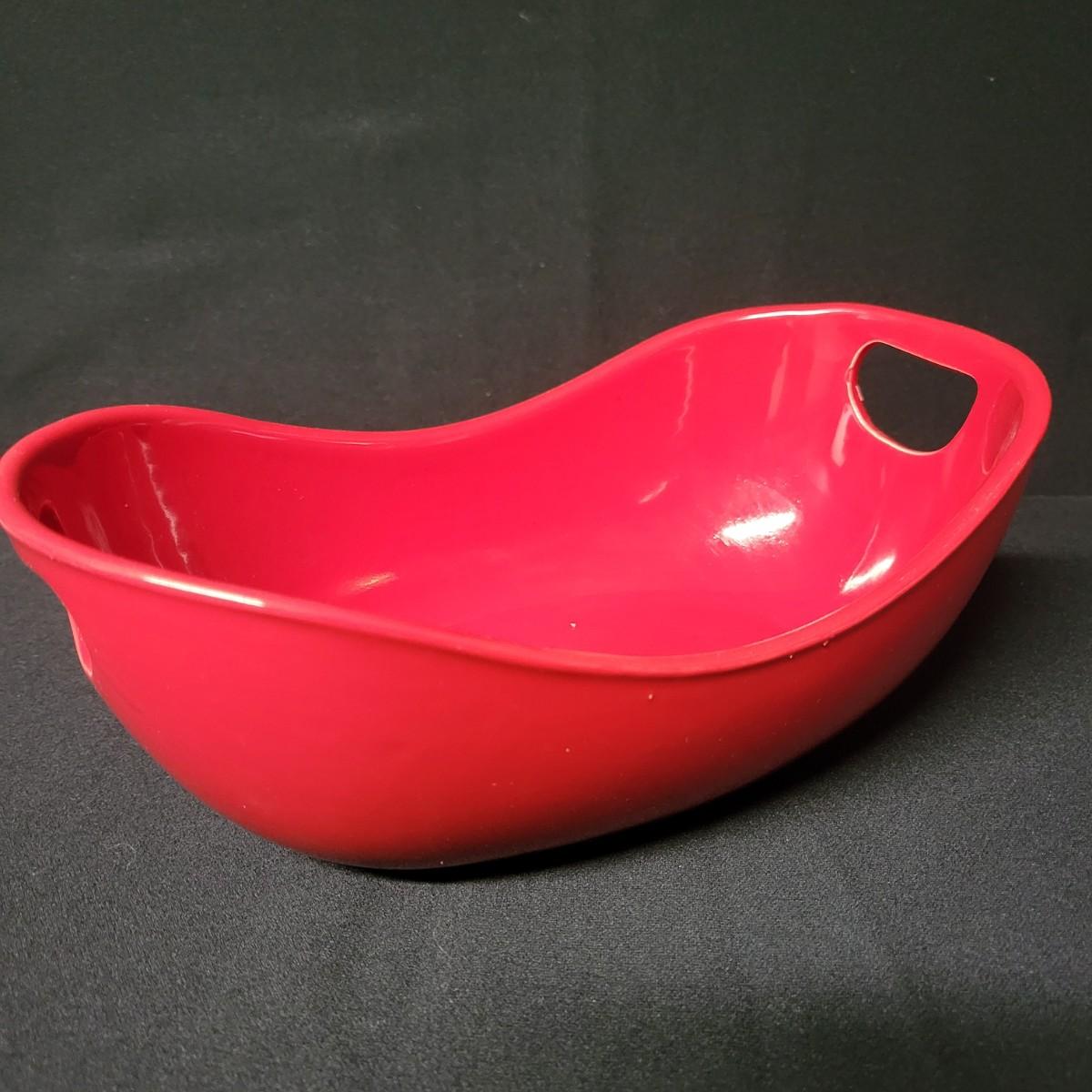 A set of 4 ceramic bowls in good condition. One piece does have a minor chip. See attached pictures for more detail. Two bowls are solid red with handles. The other two have a red exterior and a white interior. The largest square bowl measures approximately 10" x 2" Shipping available.