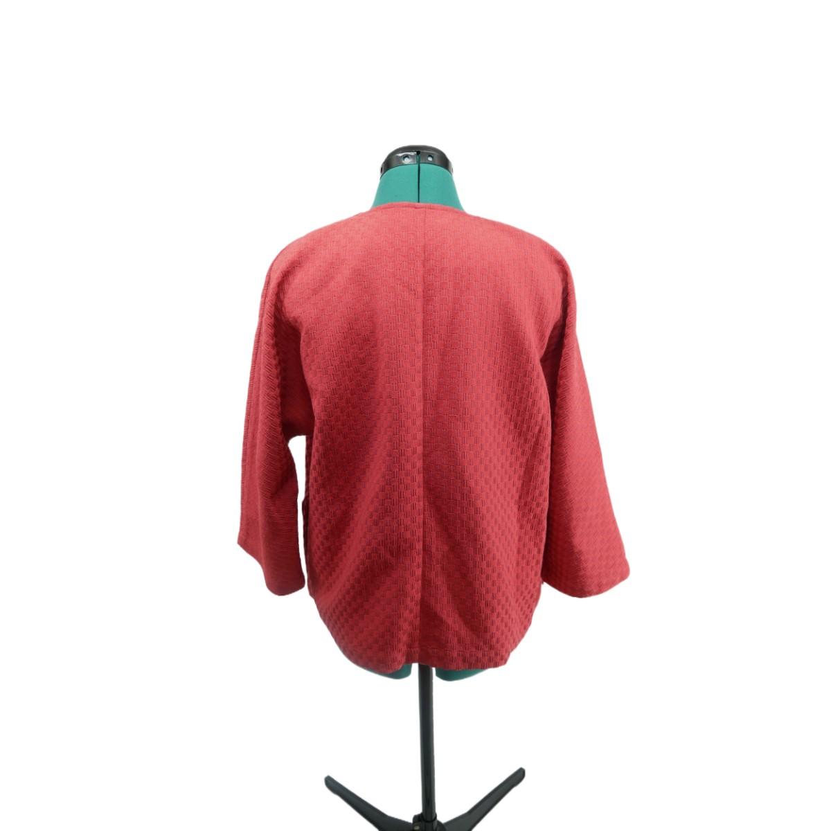 Chico's size 1, comparable to women's size M 8/10. Beautiful weaved pattern with oversized wooden square buttons.