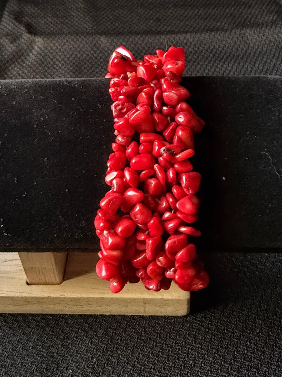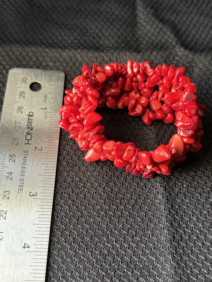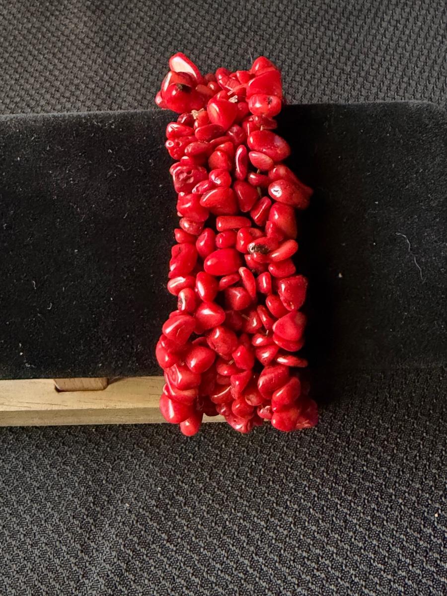 Red chip beaded stretch statement bracelet
