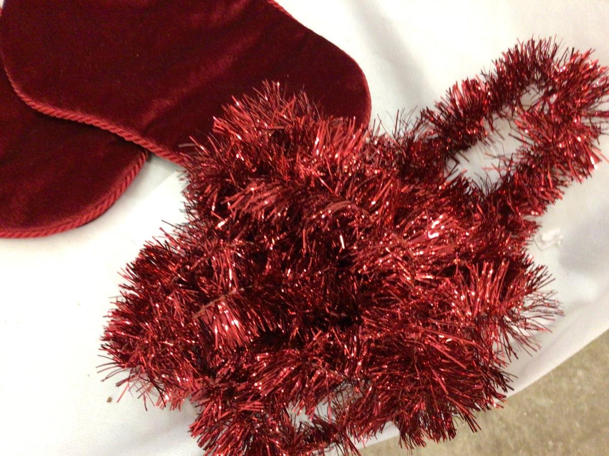 You get a set of 3 Christmas socks another set of two Christmas socks, and r3d garland.