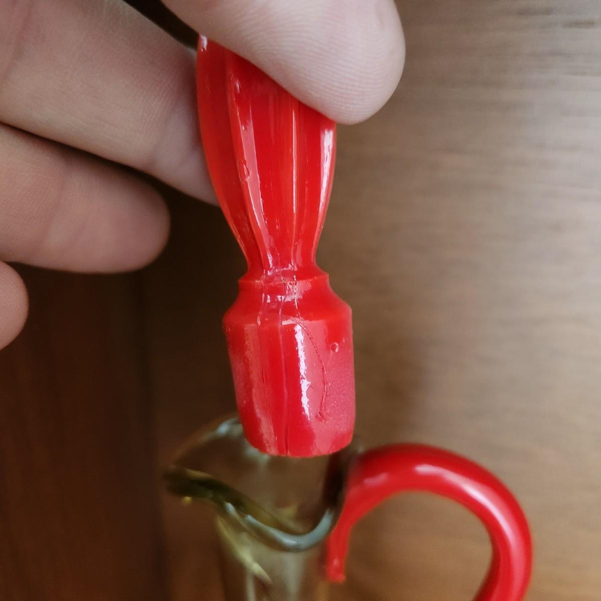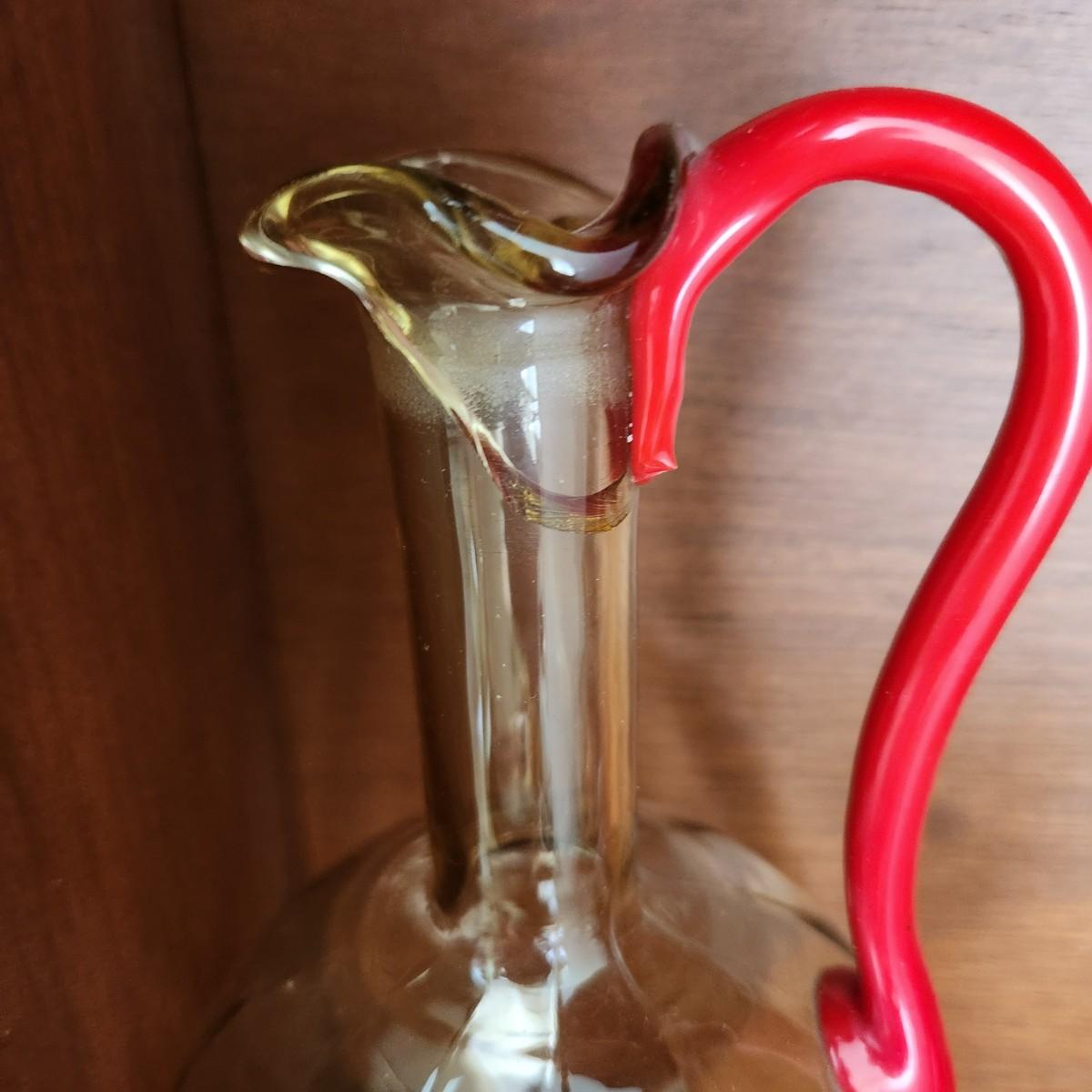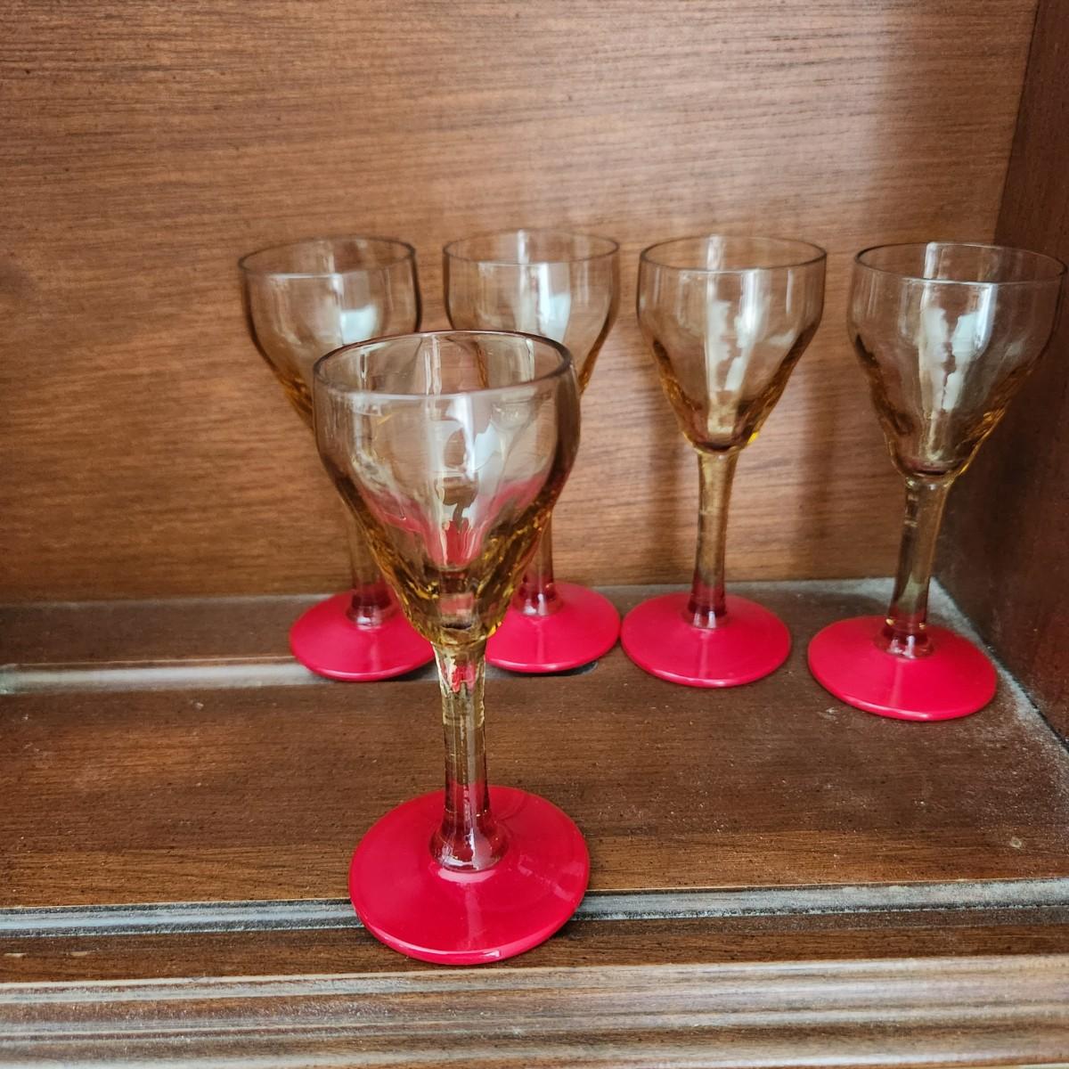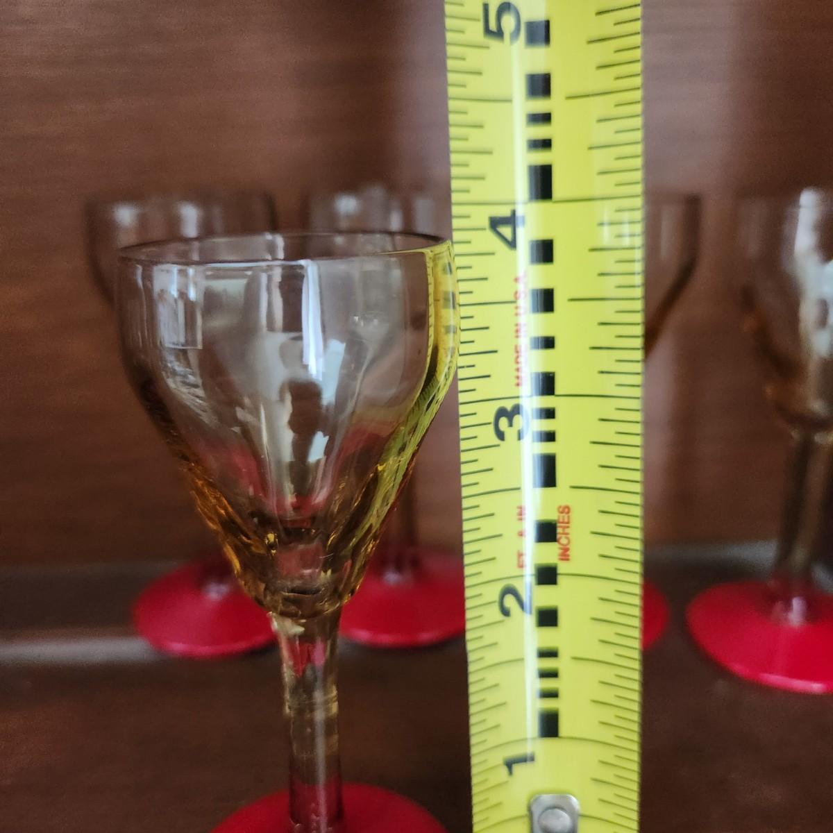 Red /Clear Glass Decanter w 5 Cordial Glasses