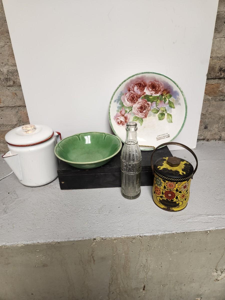 This lot is so great...the plate is Barnsville advertising, the nehi bottle is awesome and the coffee pot is retro fitted to be a lamp!! So cute